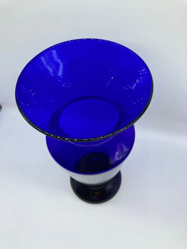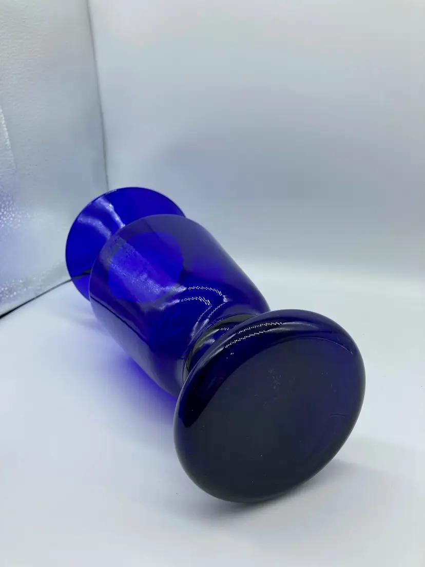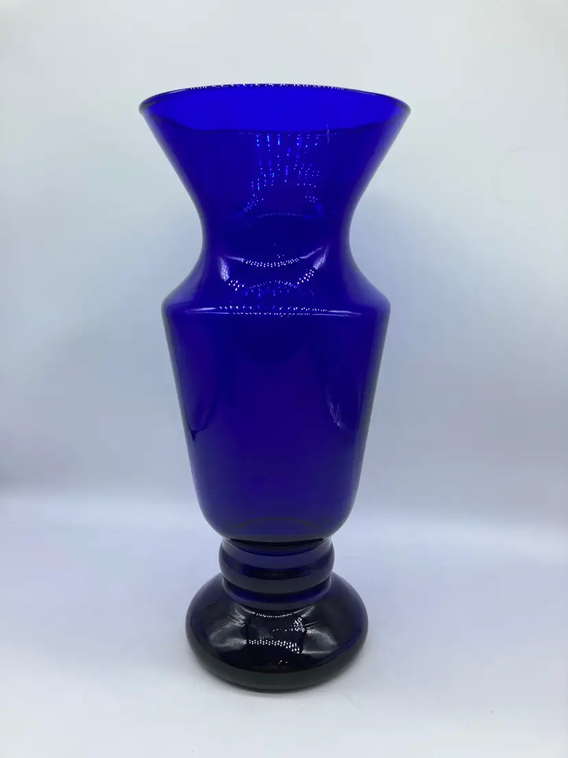 Cobalt Blue Blown Glass Vase with Heavy Ringed Base