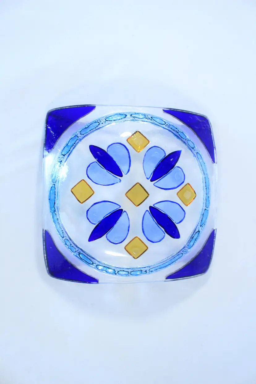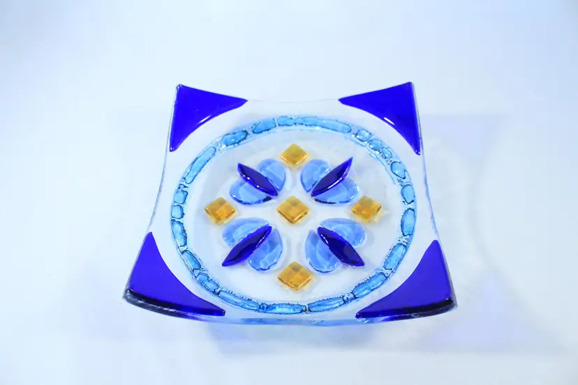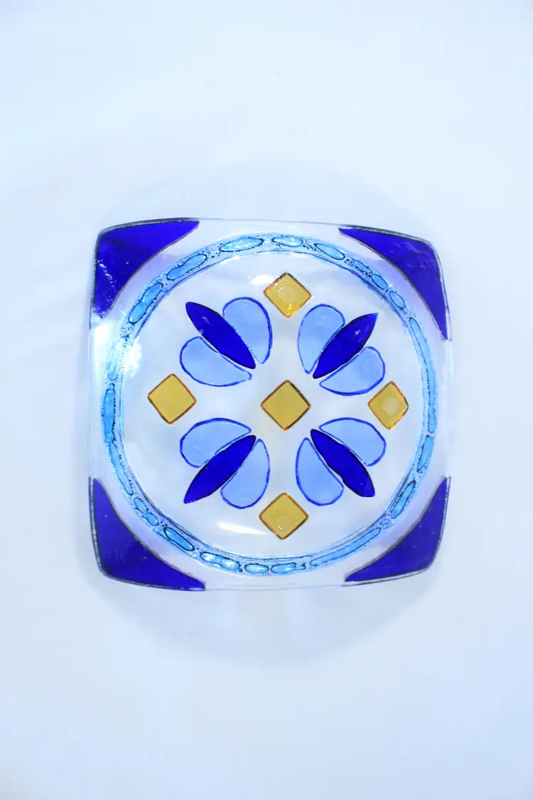 Cobalt Blue Diamond & Spade Fused Glass Art Trinket Dish