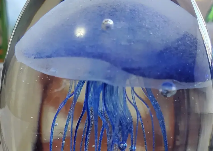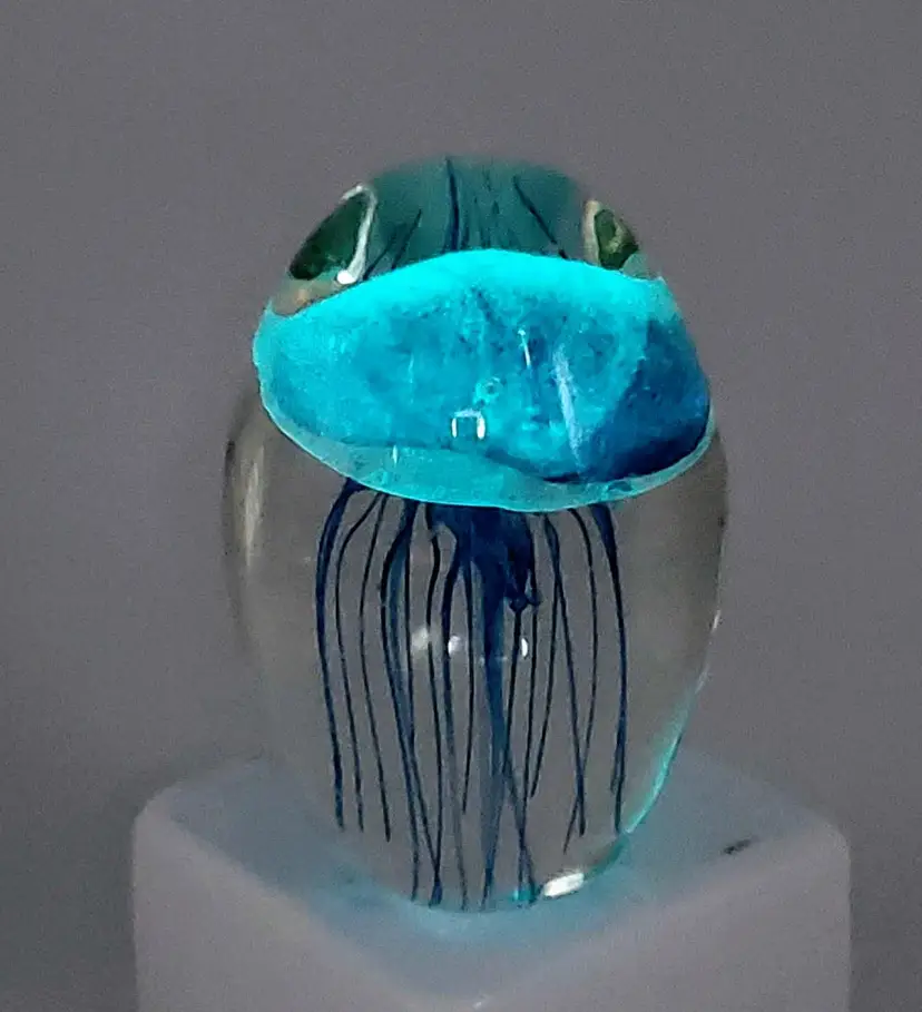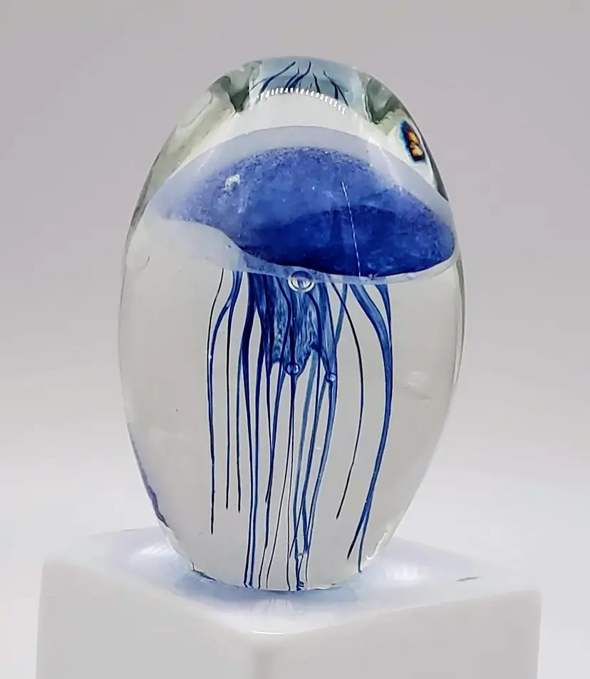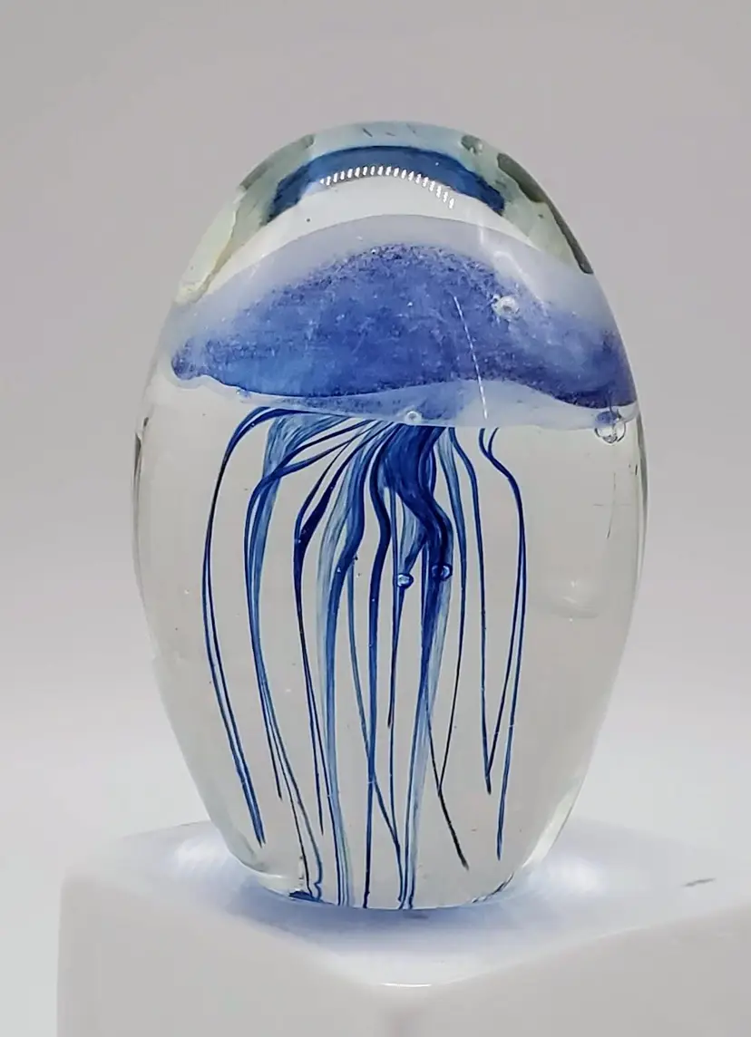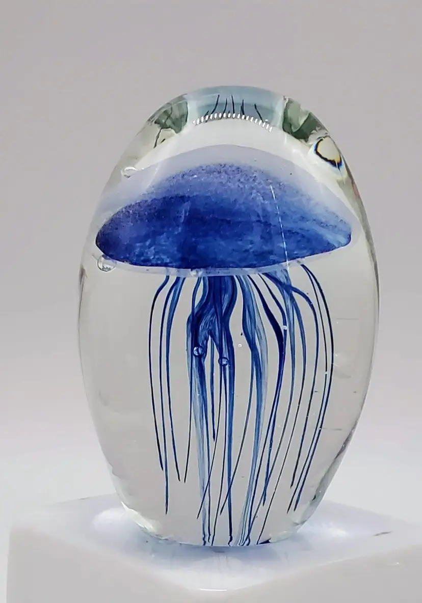 This great jellyfish paperweight features a stunning cobalt blue color that glows in the dark.