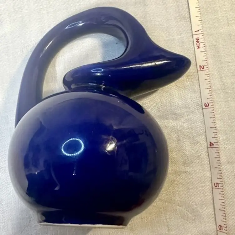 Cobalt Blue Hull Pottery Syrup Creamer Pitcher Vintage Measures approximately 6 inches See pictures for details and measurements.