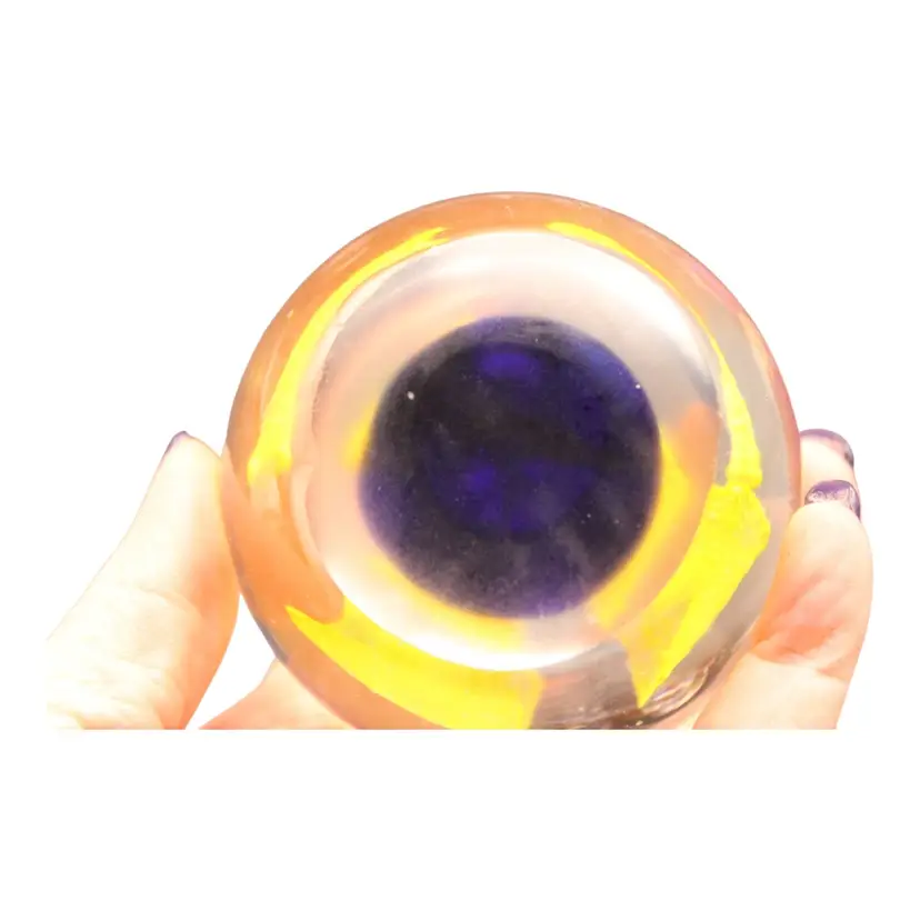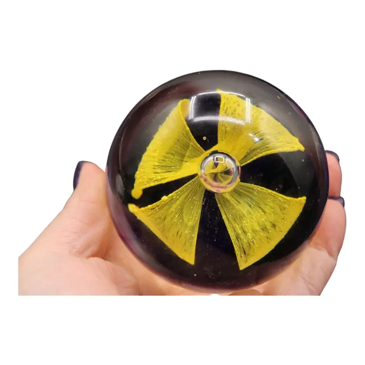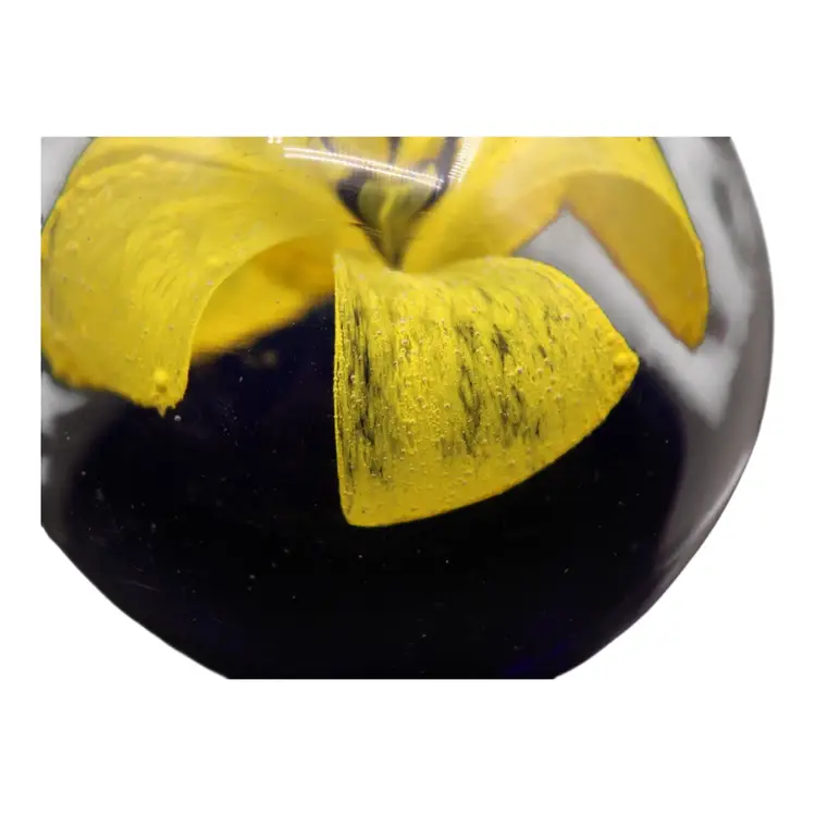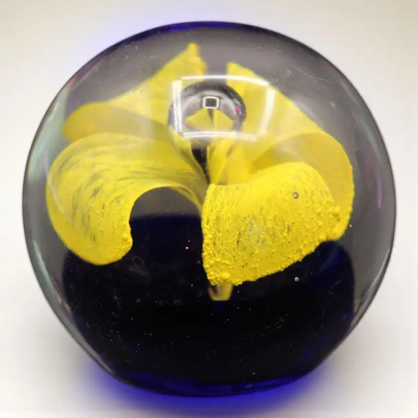Cobalt Blue with Lacy Yellow Flower & Center Bubble 2 1/2” Tall 1#1oz. No chips or cracks.