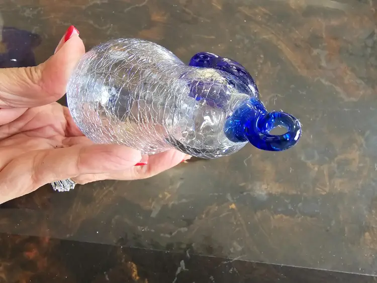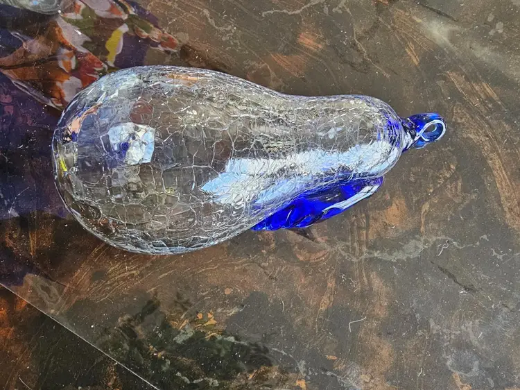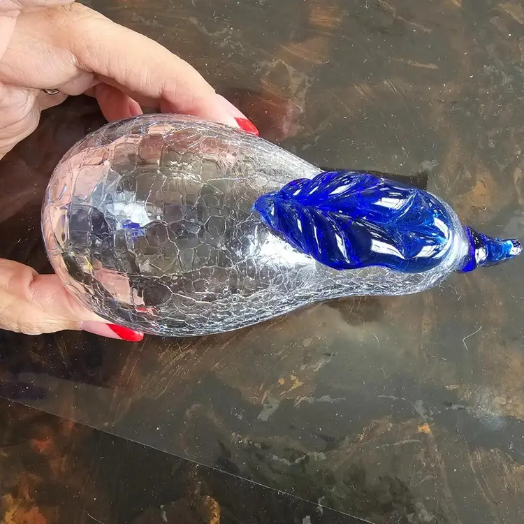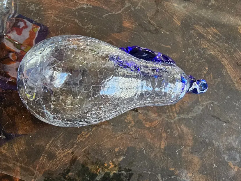Cobalt & Clear Handblown Crackled Glass Pear Art Glass Ornament