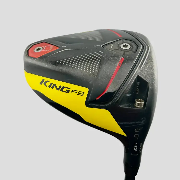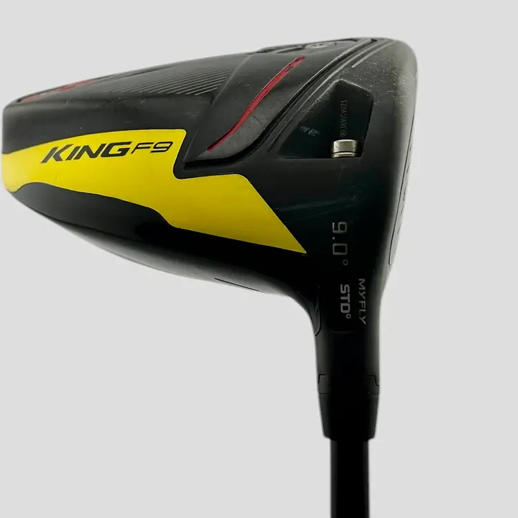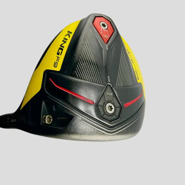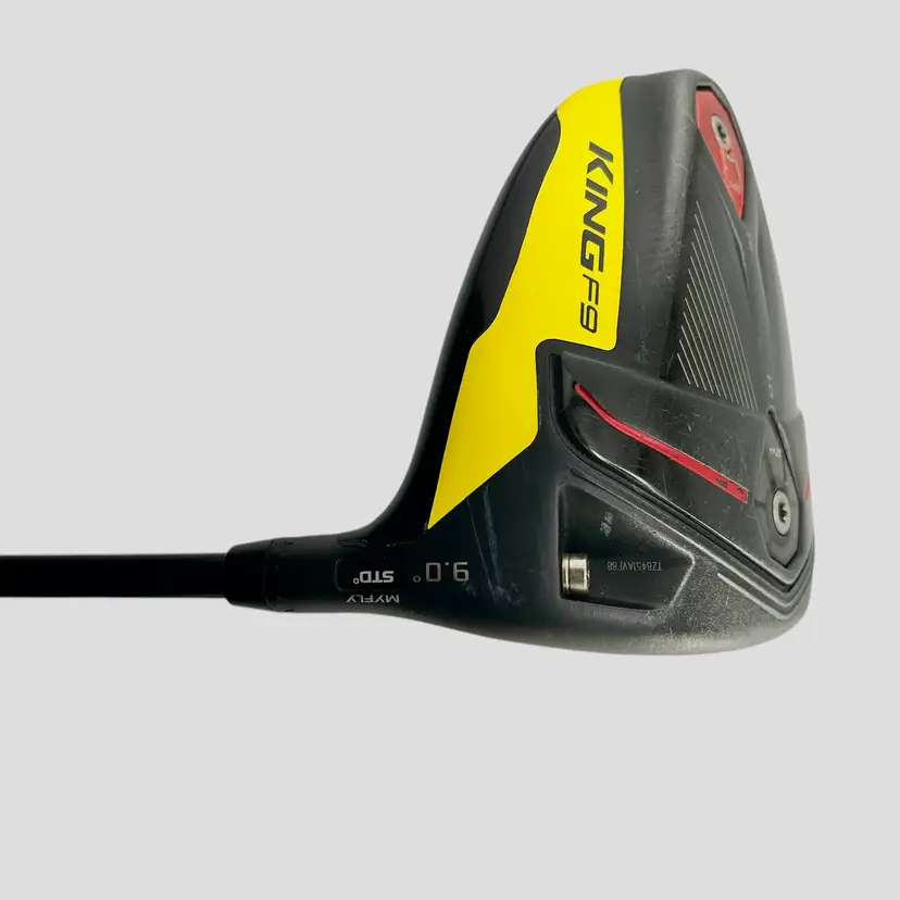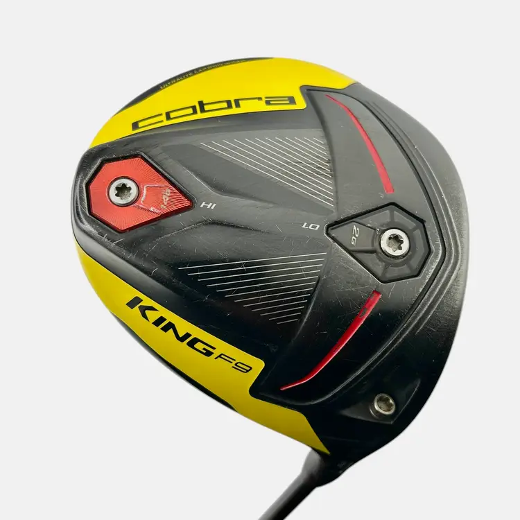 Cobra King F9 Driver Right Handed 9 Degree Adjustable Fujikura Atmos 70G S Normal wear. Has scuff mark on top. Grip is new, never used.