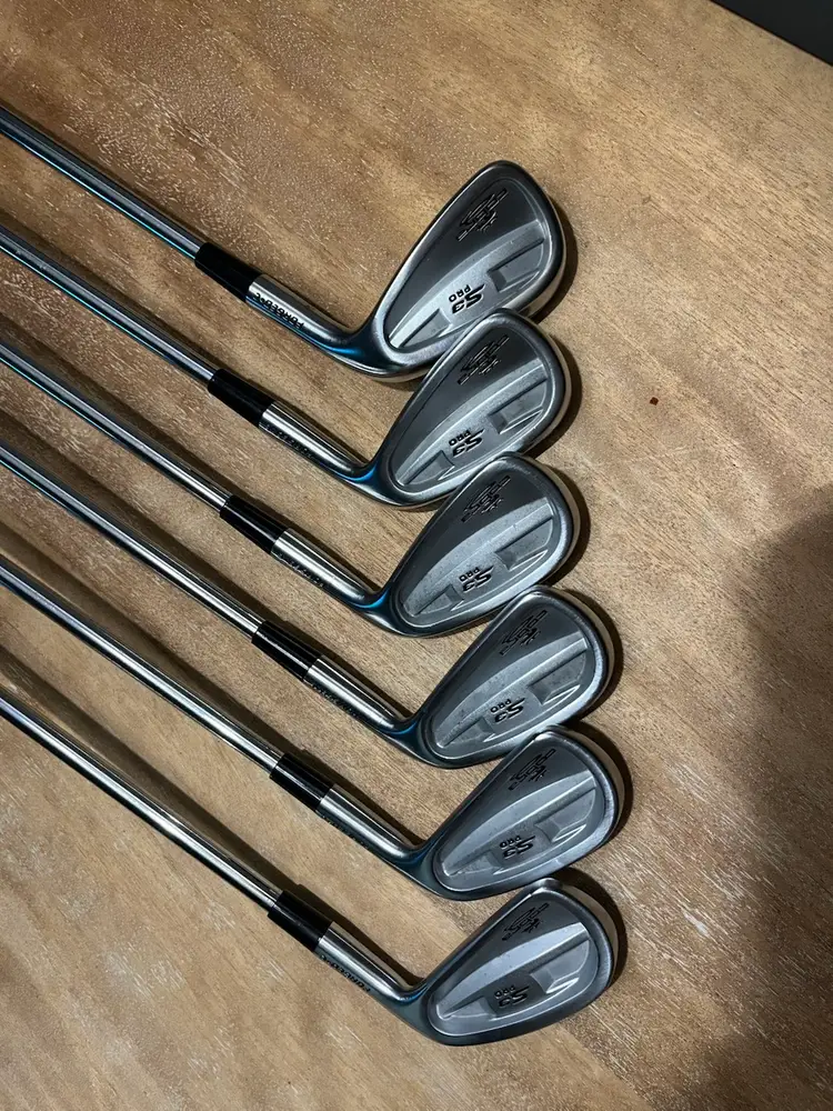 Cobra S3 Pro Forged C iron set 5-P with Nippon N.S. Pro Regular flex shafts. Shows some signs of use but overall great condition. The grip on the 6 iron was replaced with a midsize grip the rest are standard.