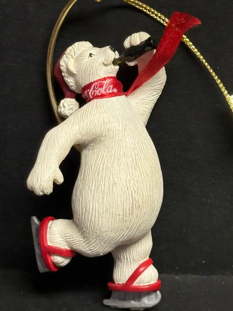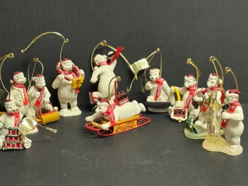 1995+ Coca Cola The figurines are Coca Cola bears collector, ornaments distributed by Enesco Used but never used Just stored away. Approx 3 inches in height.
