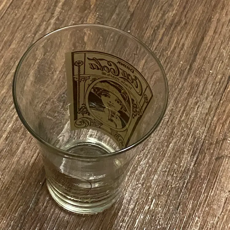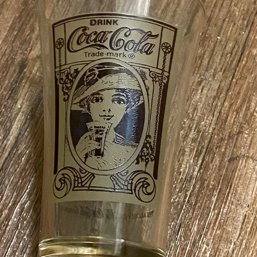 Coca Cola Glass Cup Receeation 80’s Lady Flair Brown Victorian Design 5.6” H Great condition with no damages Bottom Diameter 2.25” Top diameter 3.5” #cocacola #coke #ladyflair #victorian #glass