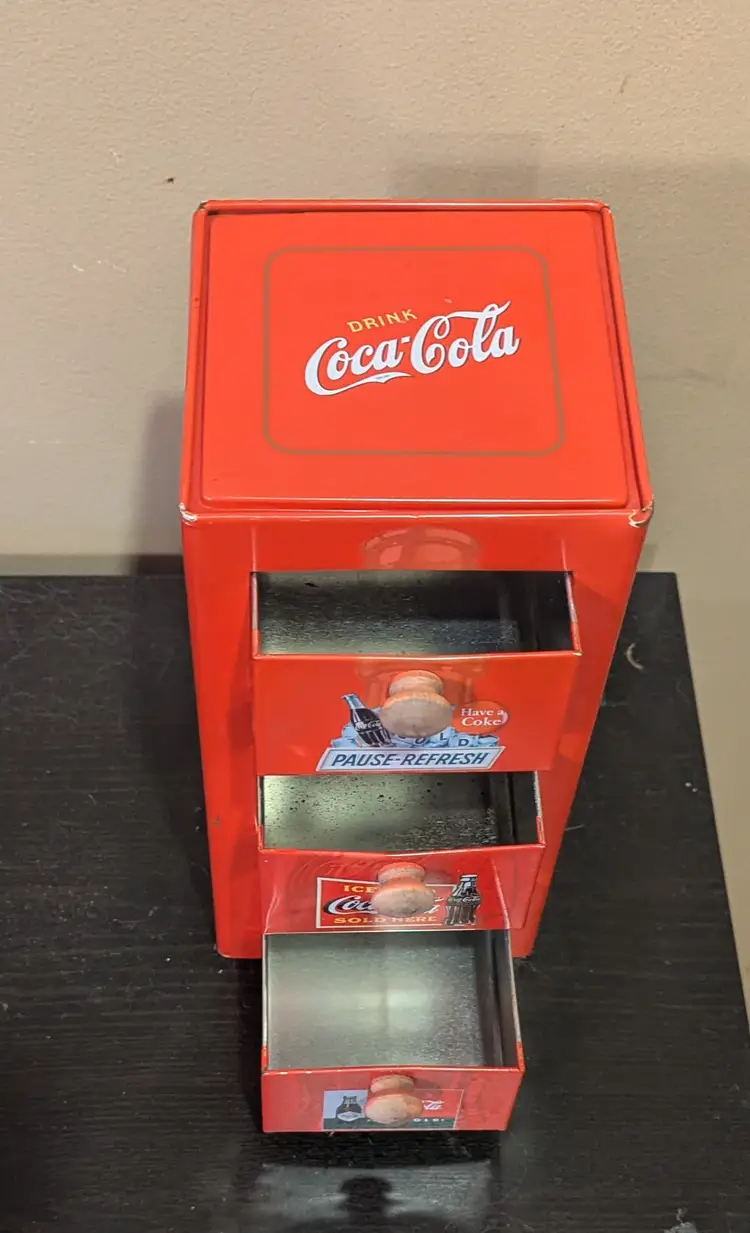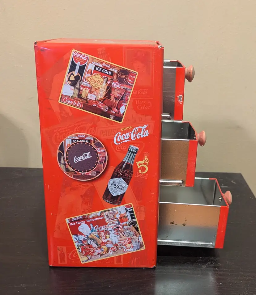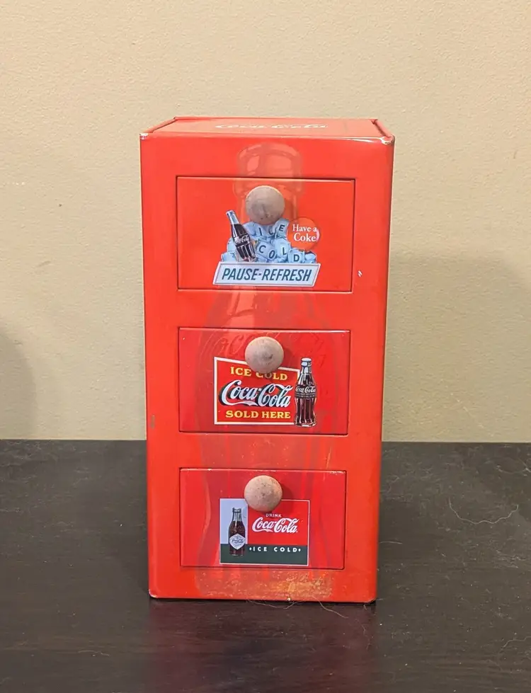 2003 Coca-Cola Vintage Tin 3-drawer file cabinet. 10"x5"x5"