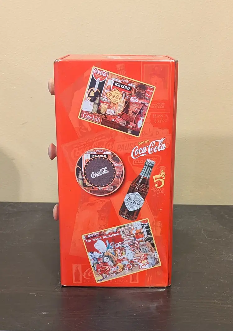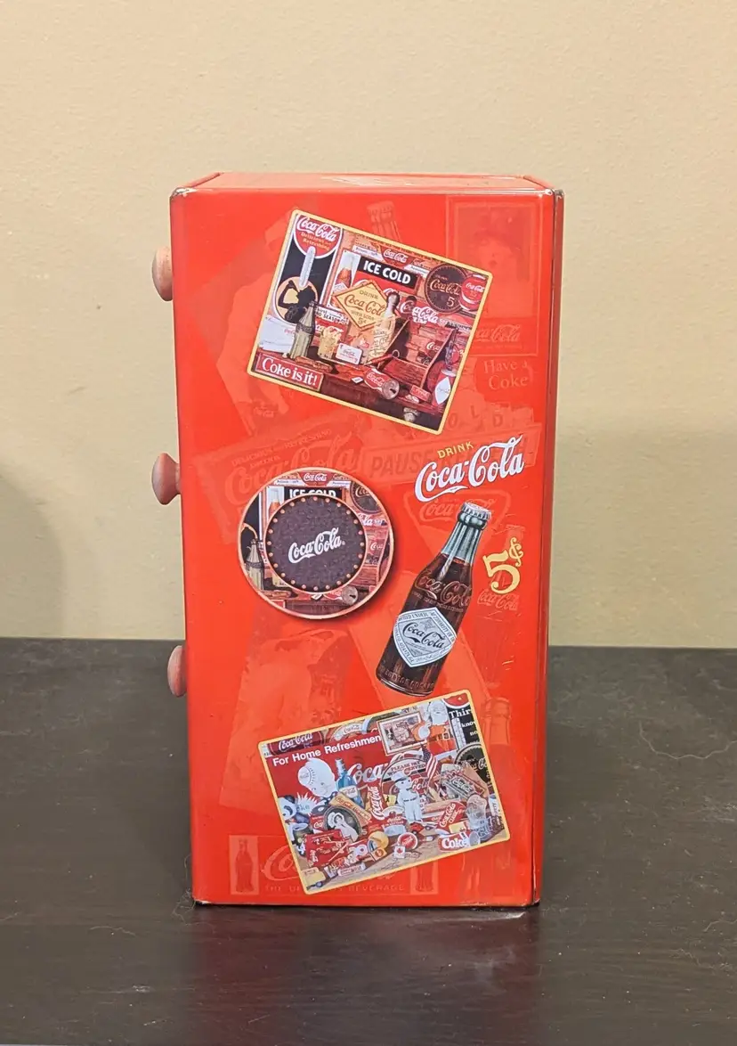The Coca-Cola Vintage Metal Tin Set is a collection of original advertising items featuring the iconic Coca-Cola brand. Perfect for fans of Coca-Cola and vintage advertising, this set captures the essence of a classic American soda brand. Set includes: