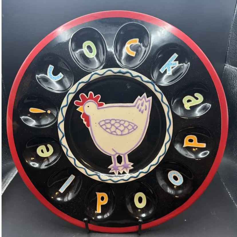 This amazing plate holds TWELVE deviled eggs! Such a cute way to put out the best part of the appetizers!