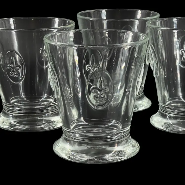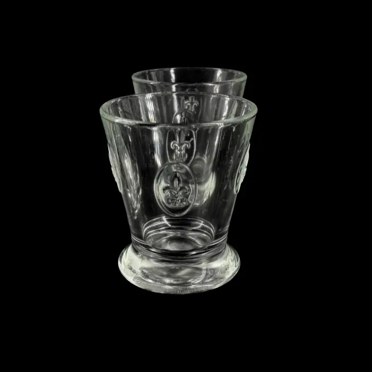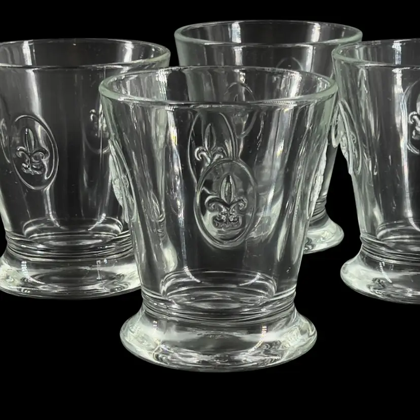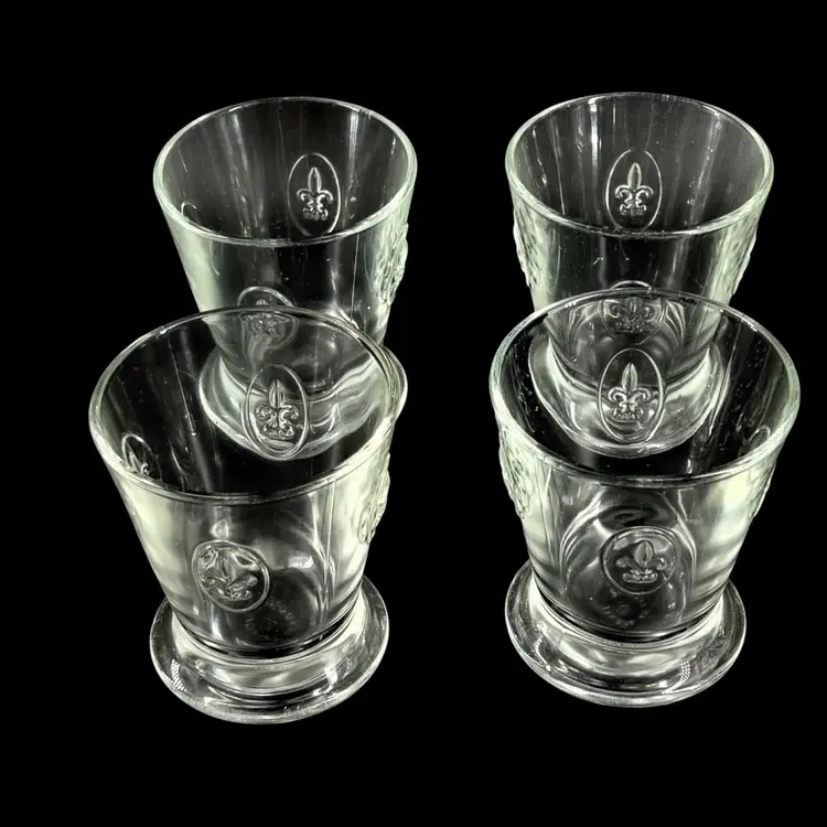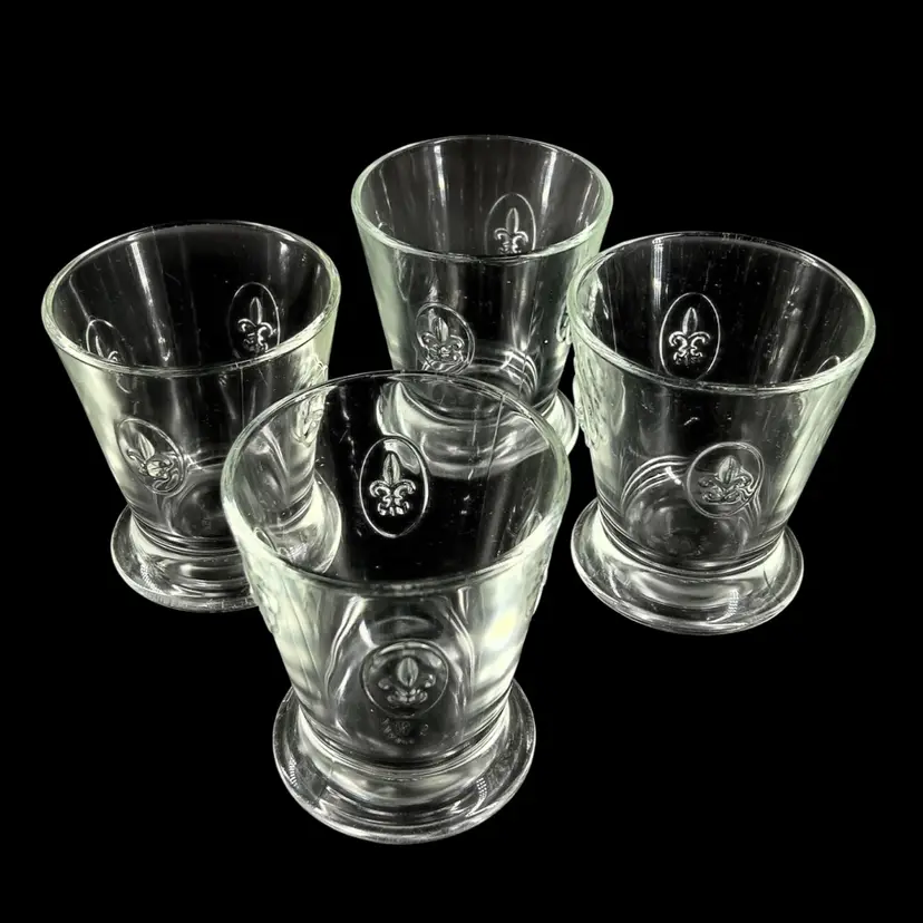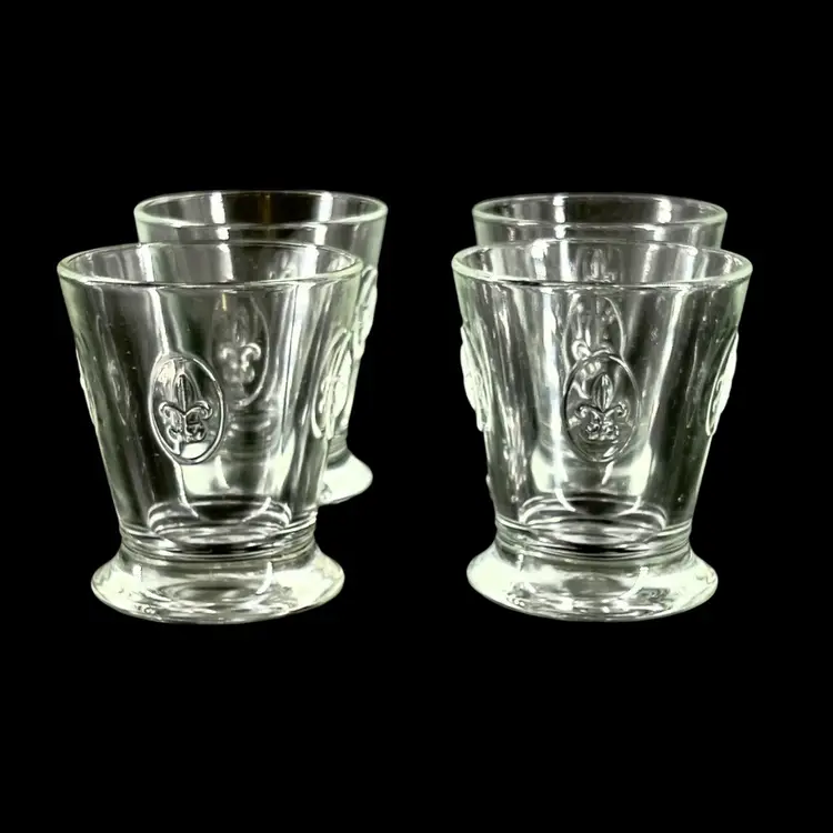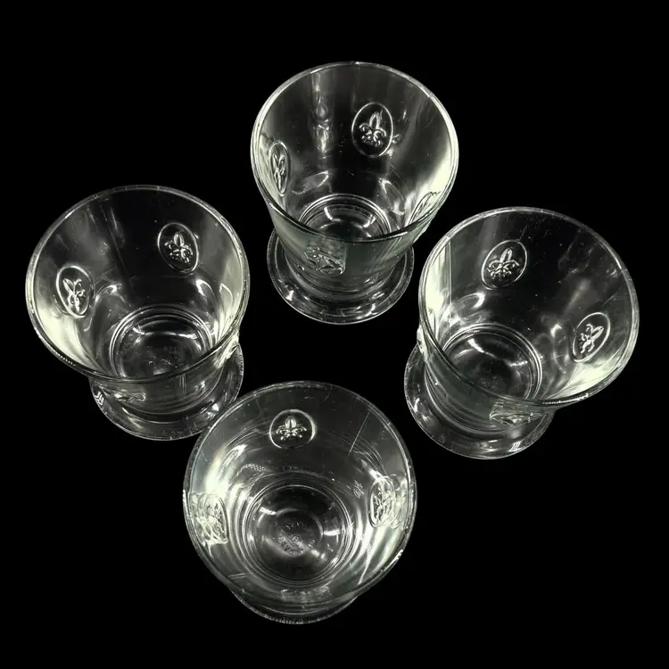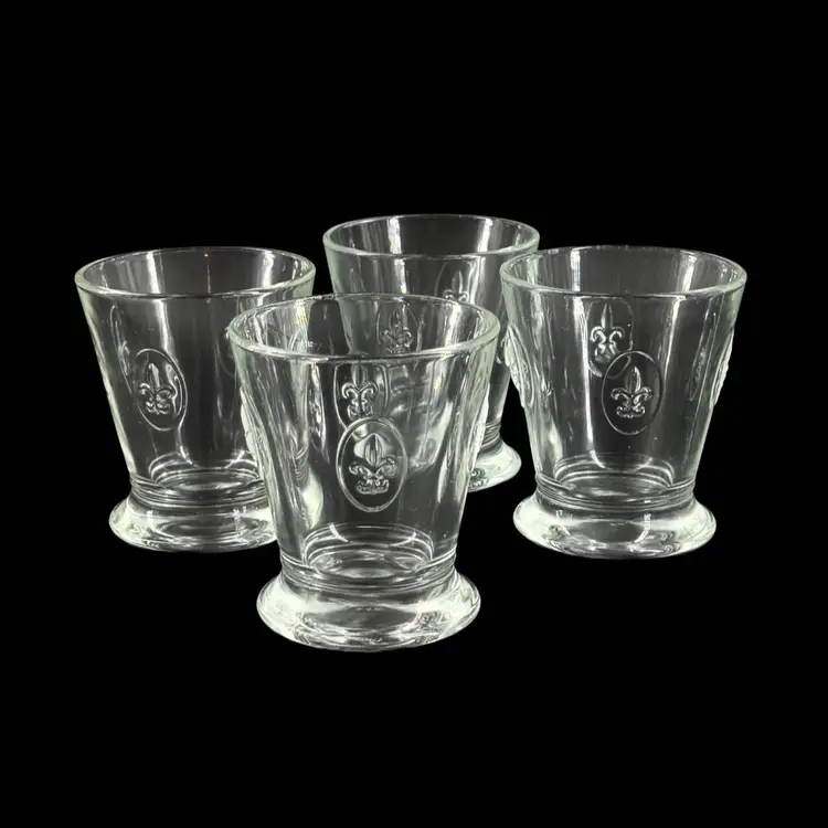 Fun Fact: Known as the oldest active glassworks in France, La Rochère is celebrated for its durable, pressed glass inspired by French heritage. These specific tumblers feature the iconic royal lily motif embossed on their flared bodies