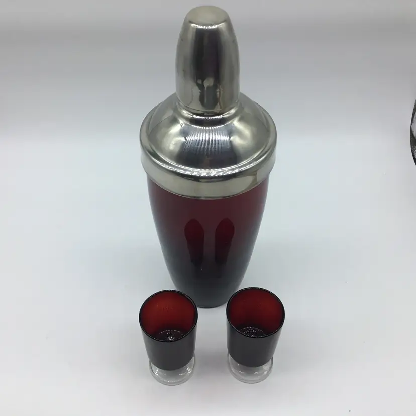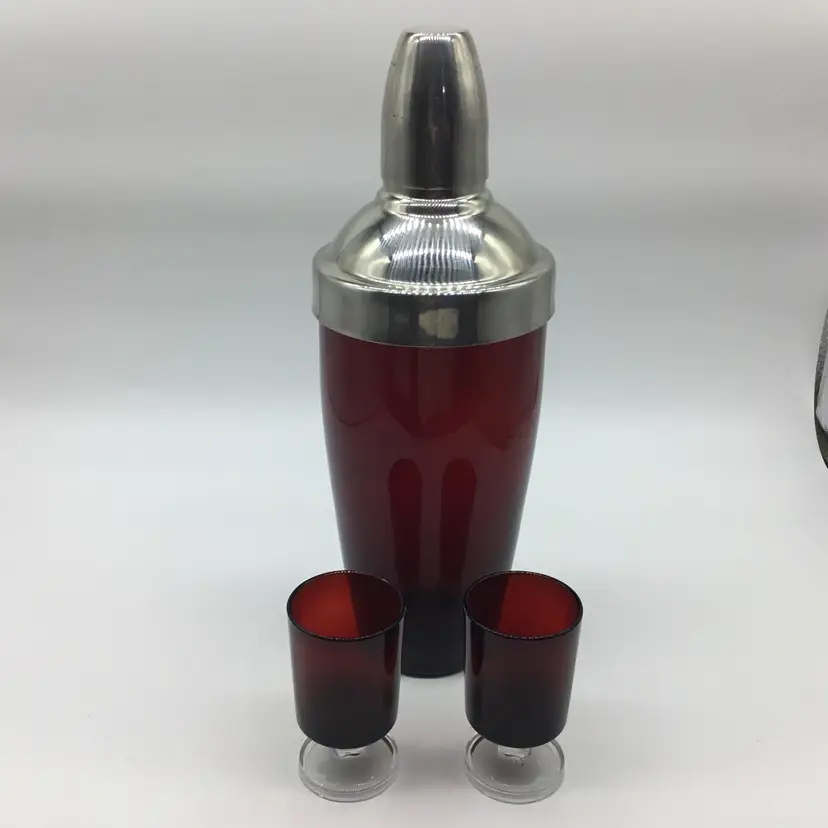 Cordials made in France. Cocktail shaker is unbranded