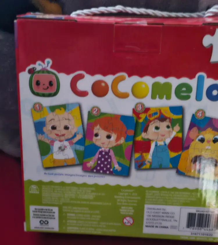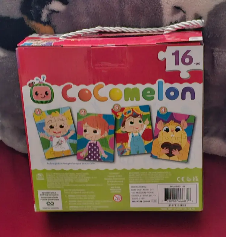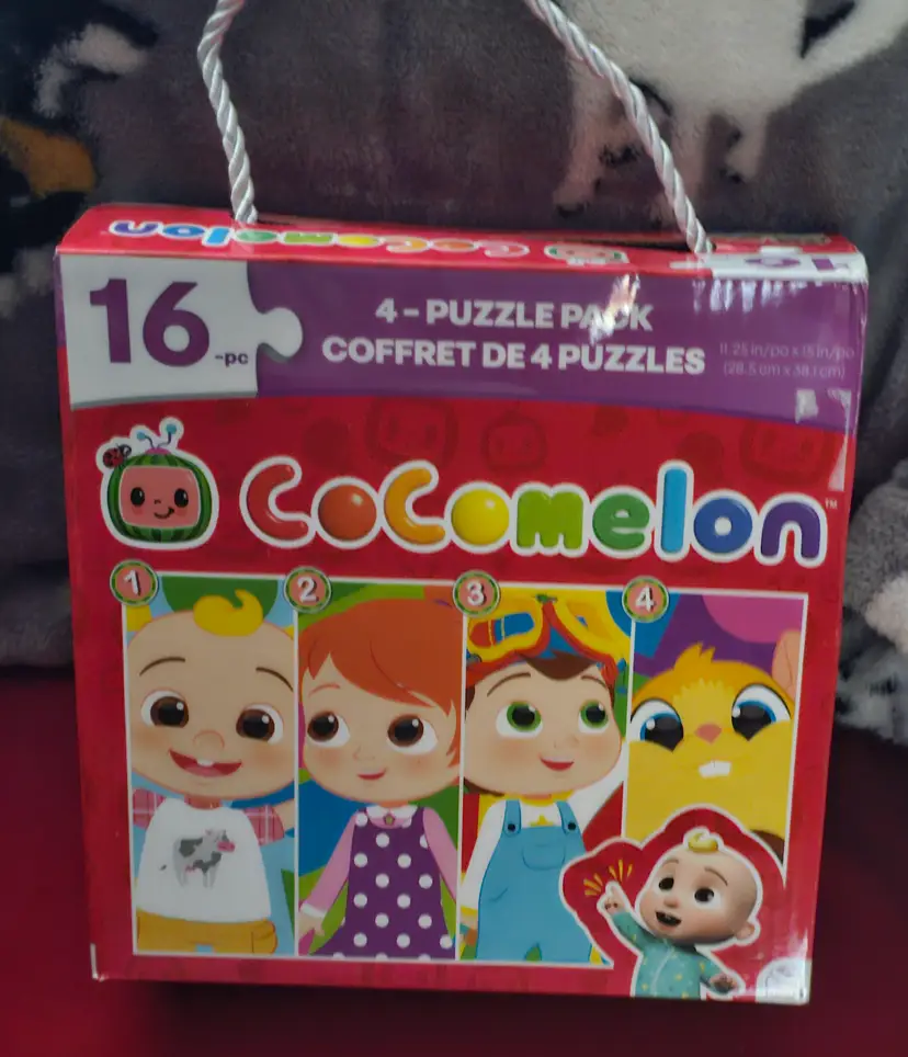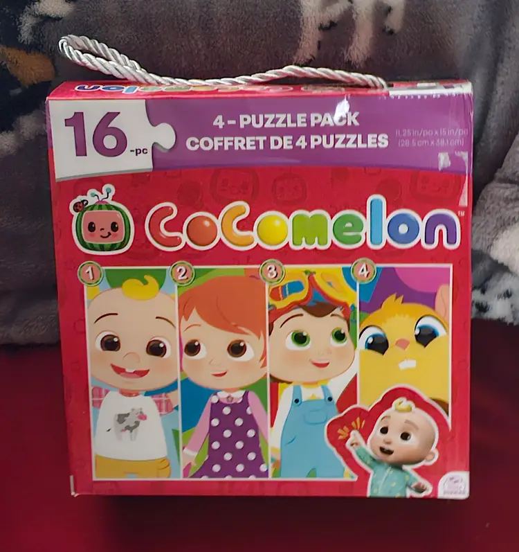 Cocomelon Four Puzzles contain a total of 64 pieces, with each puzzle featuring characters from the popular children's television show. Made of sturdy cardboard, these interlocking puzzles are perfect for fans of Cocomelon. The colorful design and pet-free household make these puzzles a fun and engaging activity for kids to enjoy.