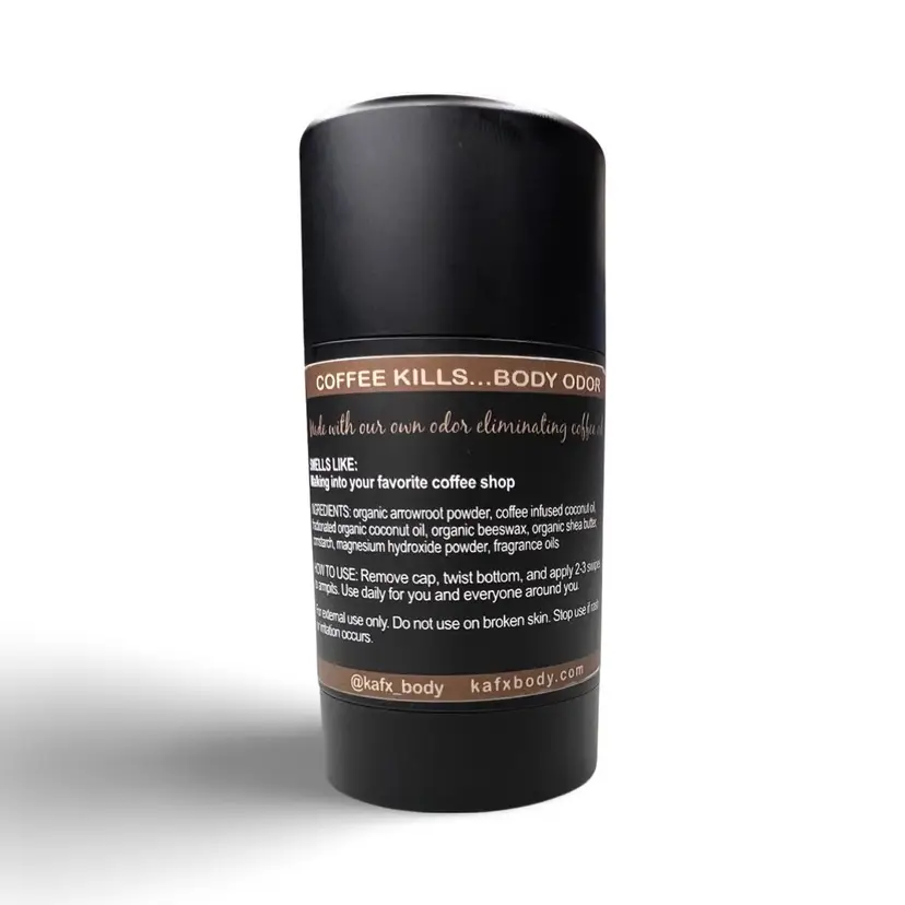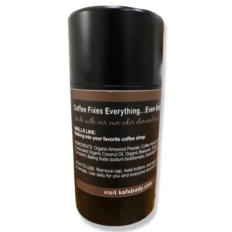 3 Pack Bundle of Coffee Shop Natural Deodorant and Save! SMELLS LIKE: walking into your favorite coffee shop CONTAINS ZERO: ALUMINUM, PARABENS, PHTHALATES, SULFATES, OR DYES This is a Bundle of 3x Coffee Shop Natural Deodorant Introducing our natural deodorant - a safe and effective solution for odor control without the use of harmful ingredients. Made with a powerful blend of natural ingredients, our deodorant is aluminum-free and contains no parabens, phthalates, sulfates, or dyes, making it the perfect choice for those who prioritize their health and wellness. What sets our deodorant apart is the infusion of very own aged coffee oil. Coffee oil is known for its antioxidant properties, which can help improve skin health by fighting free radicals and promoting overall skin vitality. Coffee also is well known for neutralizing odors, this makes it the powerful active ingredient in our unique natural deodorant. As parents to triplet sons, we understand the importance of using safe and natural products, which is why we created this deodorant for our own family. We wanted a deodorant that our sons could rely on during their active days, without exposing their skin to harsh chemicals. Our natural deodorant is gentle on the skin, yet powerful enough to effectively control odor throughout the day. Its long-lasting formula provides all-day protection, keeping you feeling fresh and confident. With its natural ingredients and coffee oil infusion, our deodorant is the perfect choice for those who seek a natural and effective alternative for odor control and skin health. Say goodbye to harmful chemicals and hello to a natural deodorant that truly cares for your skin. INGREDIENTS: organic arrowroot powder, coffee infused coconut oil,organic coconut oil, organic beeswax, organic shea butter, cornstarch, magnesium hydroxide powder, fragrance oil HOW TO USE: Remove cap, twist bottom, and apply 2-3 swipes to armpits or anywhere the body that you are looking to decrease body odor. Use daily for you and everyone around you. Our deodorant can withstand outside temperature of up to 90 degrees. If you live in an area that exceeds this temperature, your deodorant that may arrive melted. If that happens, place the deodorant in the refrigerator until it solidifies.