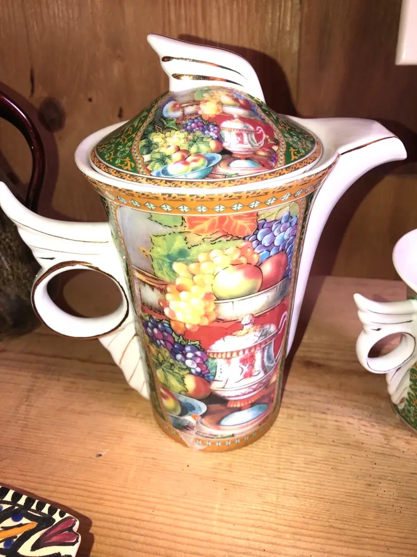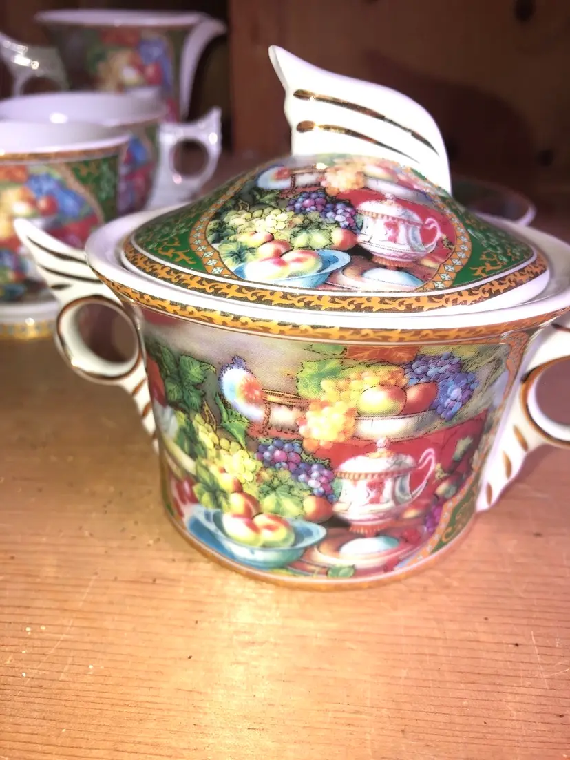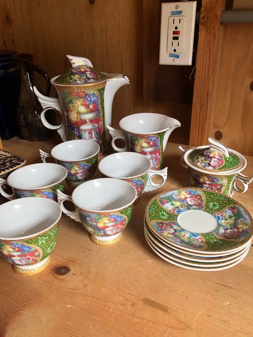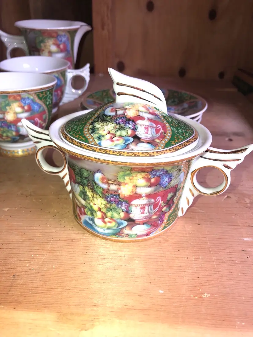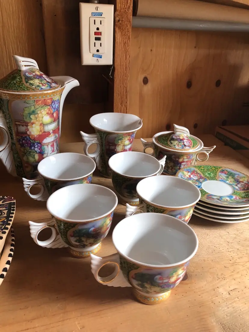 Coffee tea set 5 cups and saucers with tea pot creamer and sugar bowl porcelain