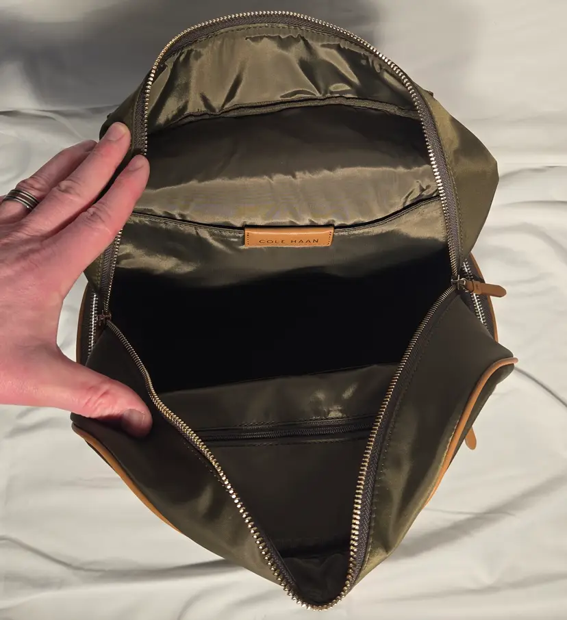 GREAT DEAL! This brand friggin' new Cole Haan women's backpack is an incredible bargain. The Delancy is hard to find in this color. You can get it right now at Macy's for $348 (the original Cole Haan price) or right here, right now, for $150!