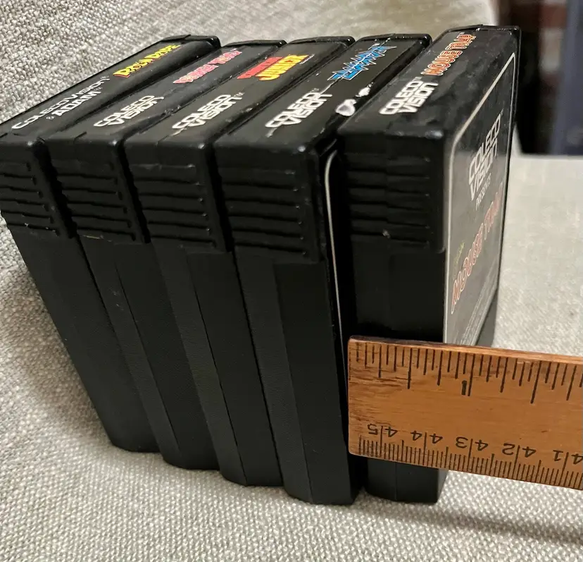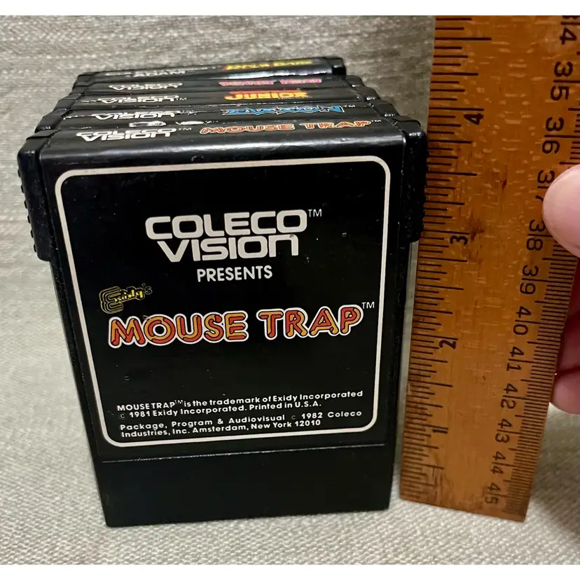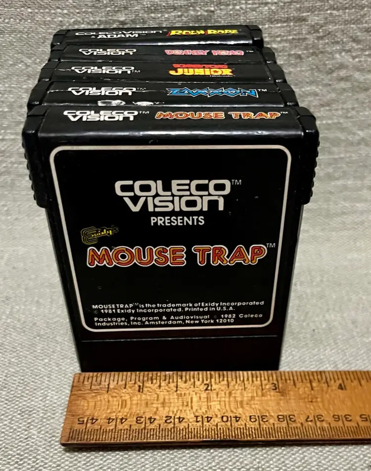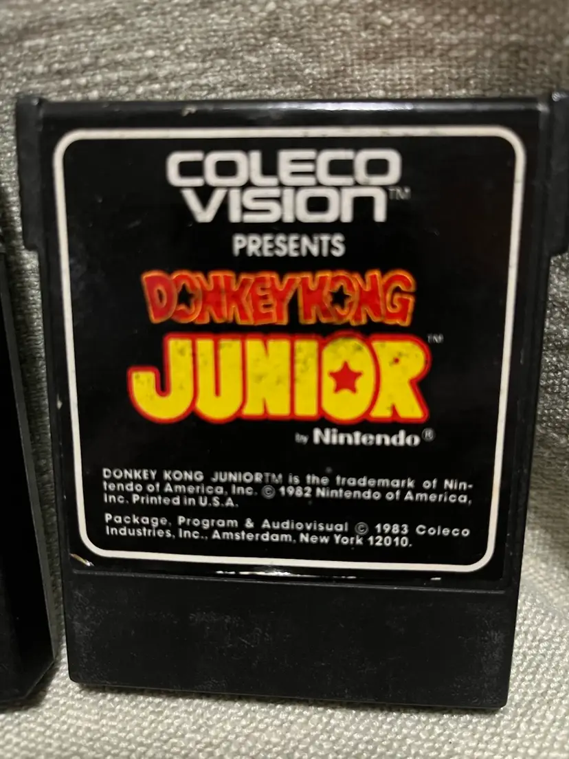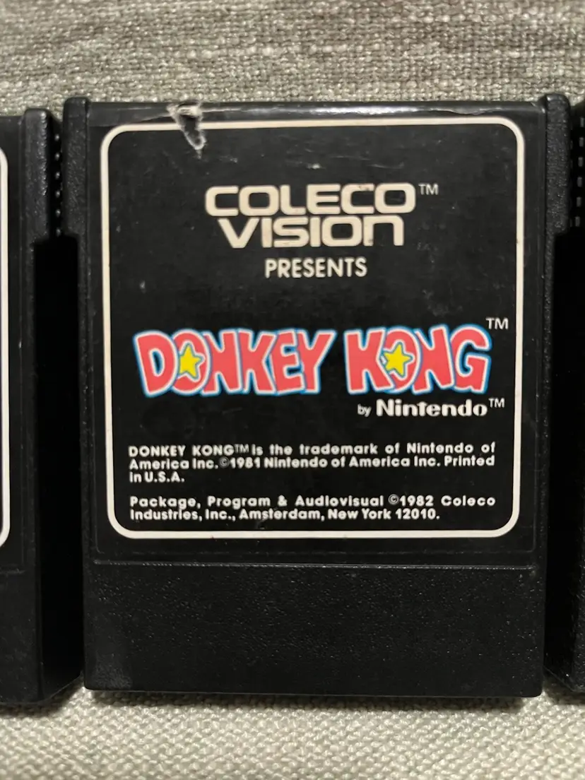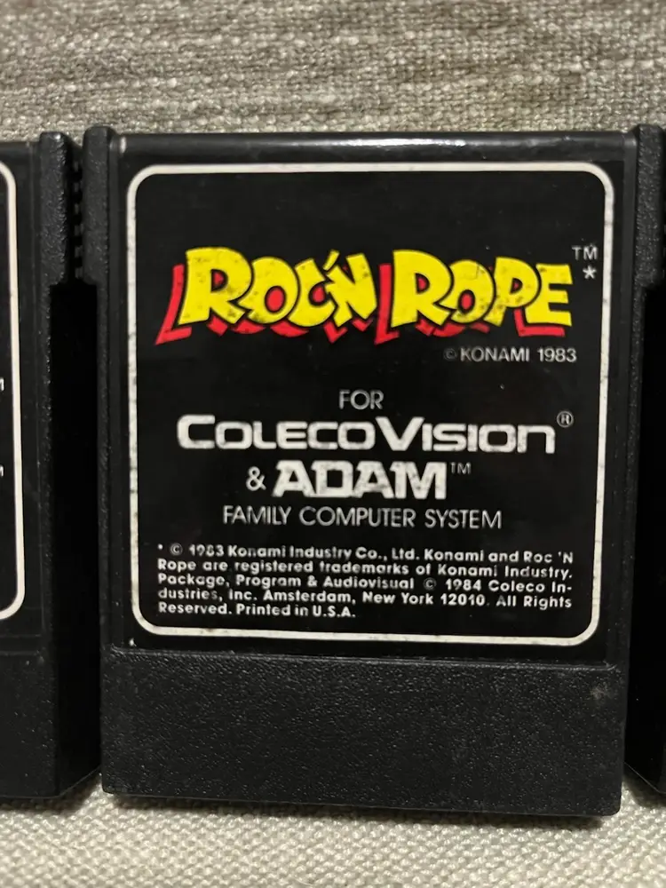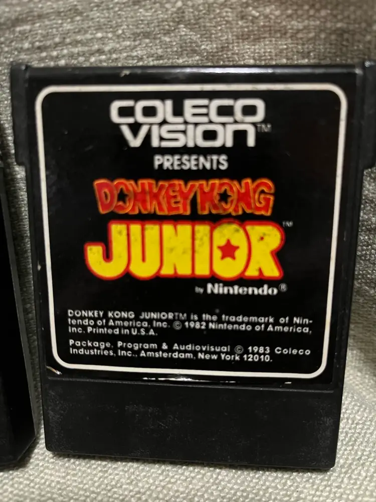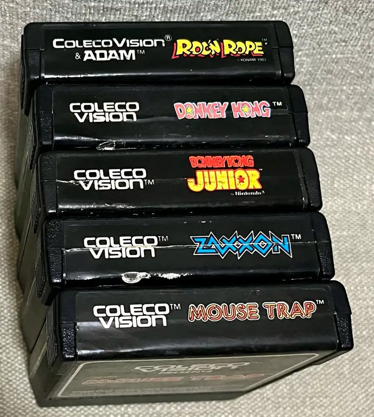 The is a collection of Colecovision games: Donkey Kong, Donkey Kong Junior, Rock n’ Rope, Zaxxon, Mouse Trap Sega, Nintendo, Konami games. These family computer system games were manufactured in the 1980s in the United States. Although the games are NOT TESTED, they hold nostalgic value for collectors and enthusiasts of vintage retro gaming from that era. The authenticity and rarity of these classic titles make them sought-after items for gaming history buffs.