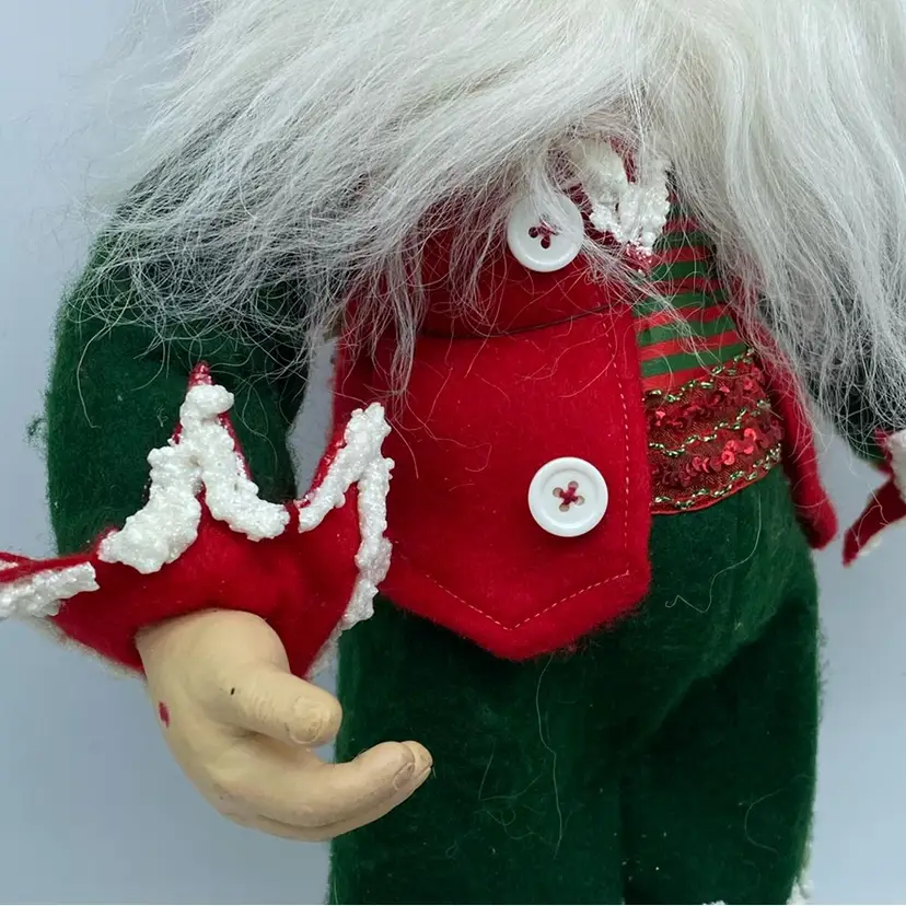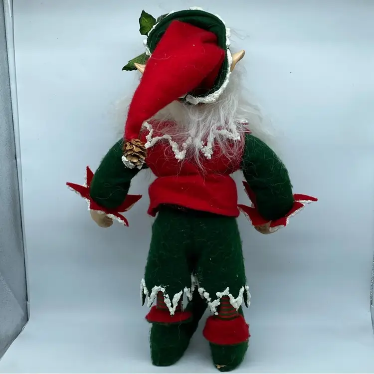This particular elf, likely part of a holiday collection, embodies the festive spirit with its traditional Christmas colors and charming character. Such figurines are often displayed during the holiday season, adding a touch of enchantment to home decor. The attention to detail in the clothing, facial features, and accessories makes each Mark Roberts piece a unique work of art.