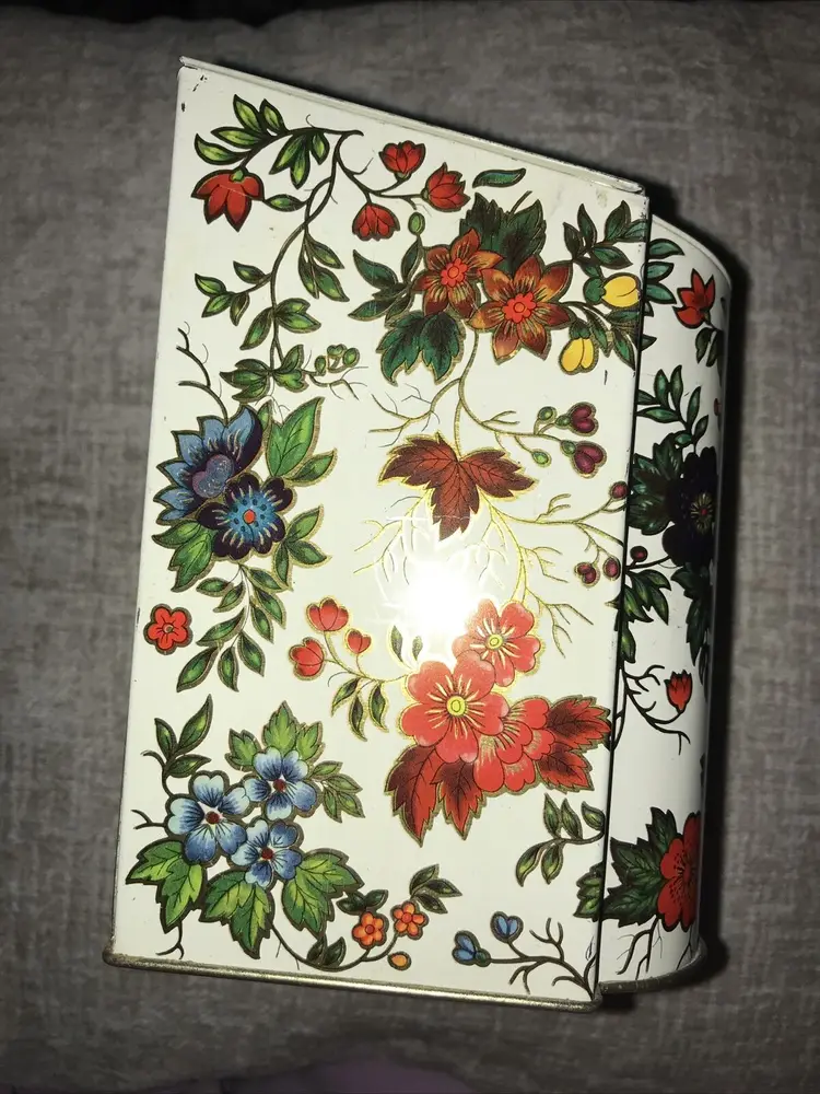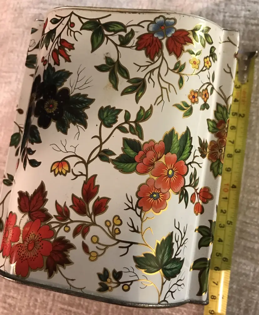 Brand: Unbranded Pattern: Floral Type: Tin box Item Height: 8 in Style: Vintage/Retro Item Length: 6 in Item Width: 6 in