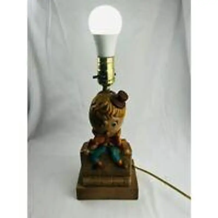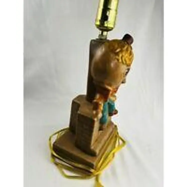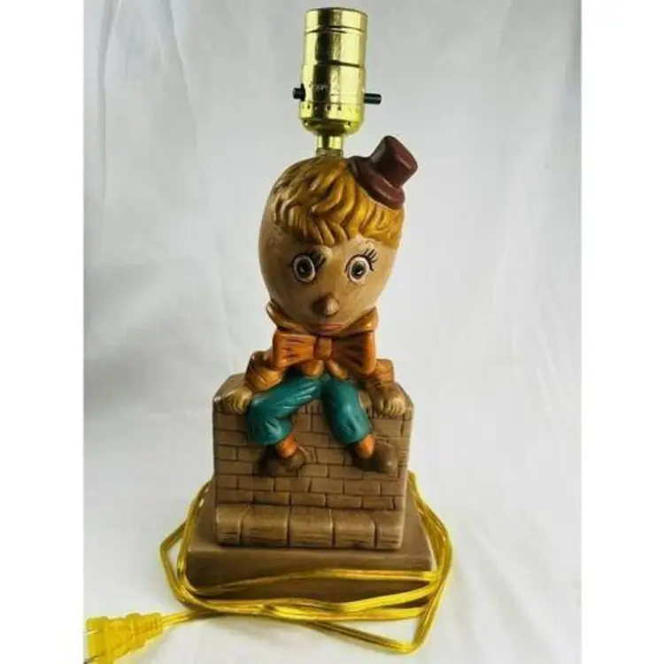 Add a touch of whimsy to your nursery or any room with this charming Collectible Vintage Humpty Dumpty Table Lamp, standing at 10 inches tall and crafted from durable resin. This unique piece is a true conversation starter and a beloved collectible for fans of nursery rhymes. It's in excellent condition overall, though there is one small stray yellow mark on Humpty Dumpty's head, a minor flaw that doesn't detract from its overall appeal. For your safety and peace of mind, this lamp has been professionally rewired. Illuminate your space with the warm and comforting glow of this delightful vintage Humpty Dumpty lamp. Don't miss out on this unique find – buy it now and bring a touch of nostalgia to your decor.