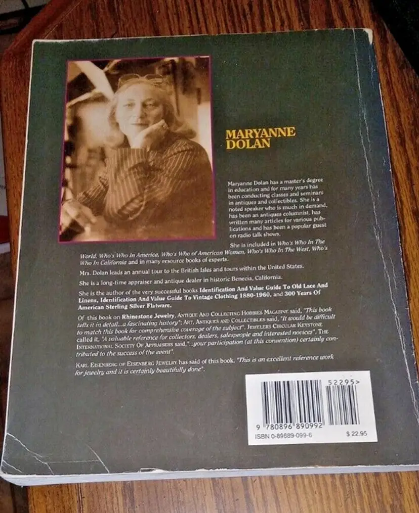 """An Identifcation and Value Guide Collecting Rhinestone & Colored Jewelry 3rd Edition, Including a comprehensive Section on Designers' Marks"" By Maryanne Dolan ""An Identifcation and Value Guide Collecting Rhinestone & Colored Jewelry 3rd Edition, Including a comprehensive Section on Designers' Marks"" By Maryanne Dolan