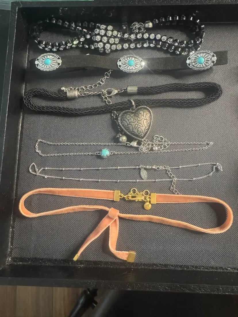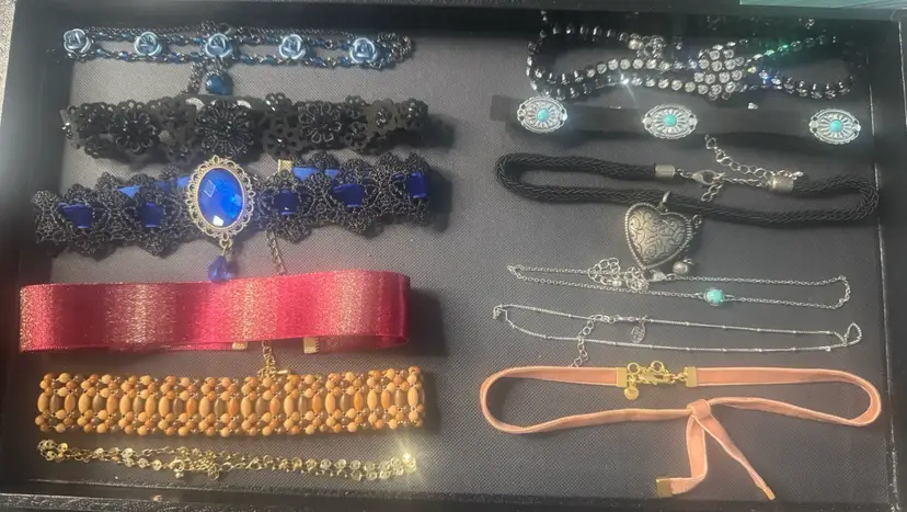 Fantastic lot of 12 choker necklaces. Four are signed, the others are not. One is INC., one is Avon, one is Benevolance Losancenes - Chain of Hope, and the last is by Madewell. All in excellent condition. Great collection. They measure from 12” to 15”.