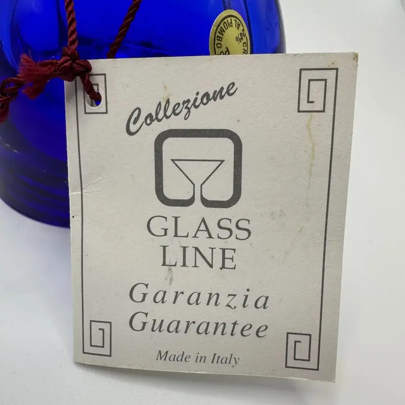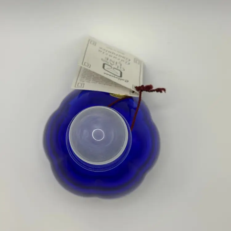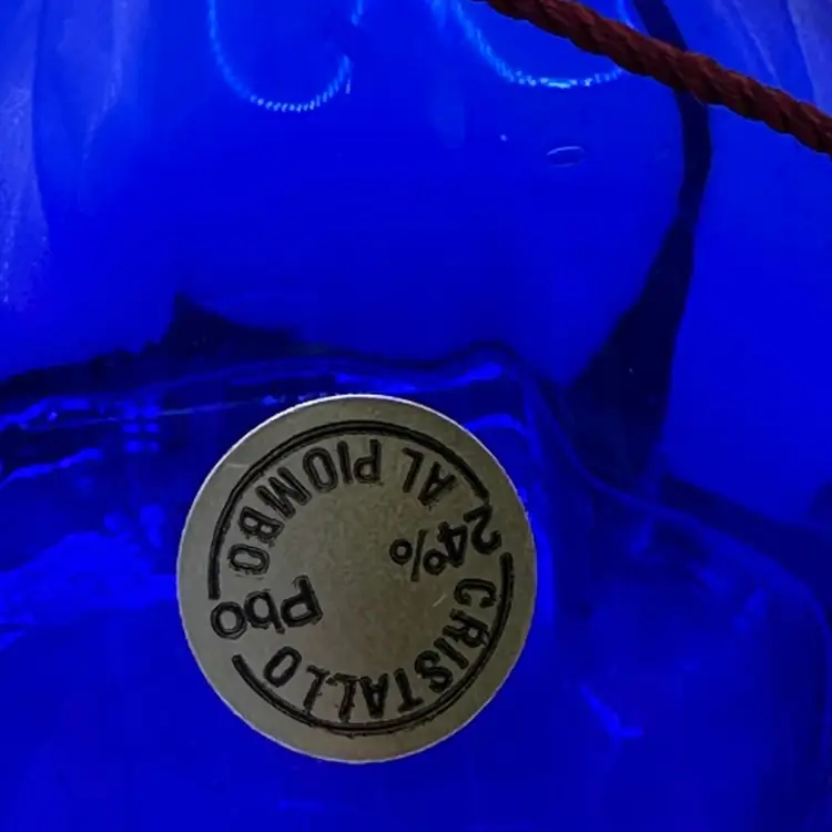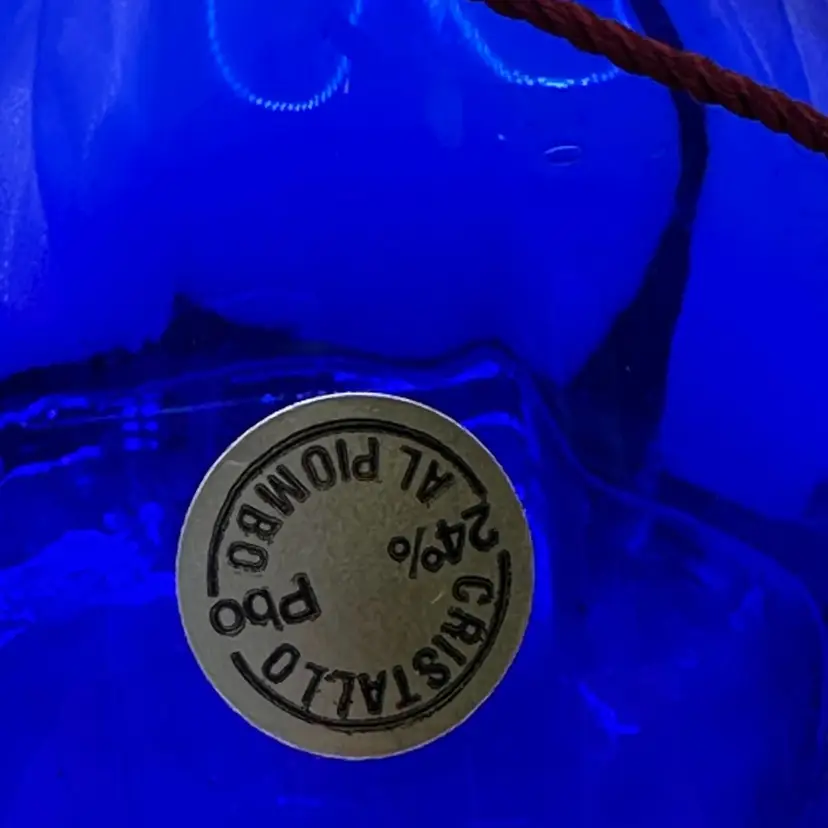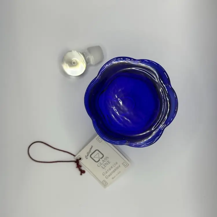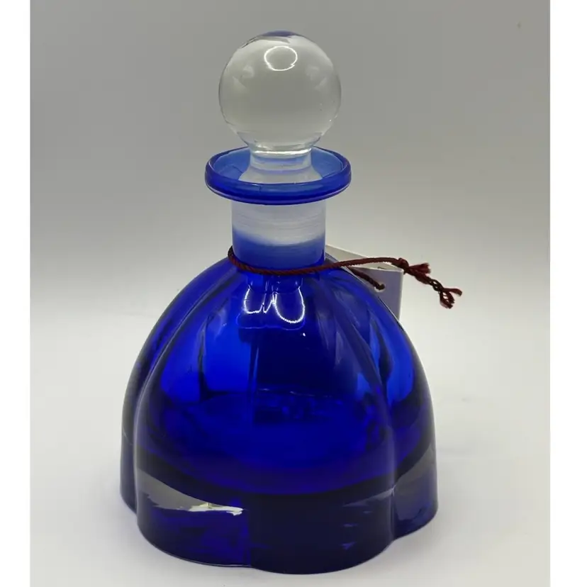 Crystal perfume bottle with stopper stands approximately 6 inches tall, is a beautiful cobalt blue color and is brand new.