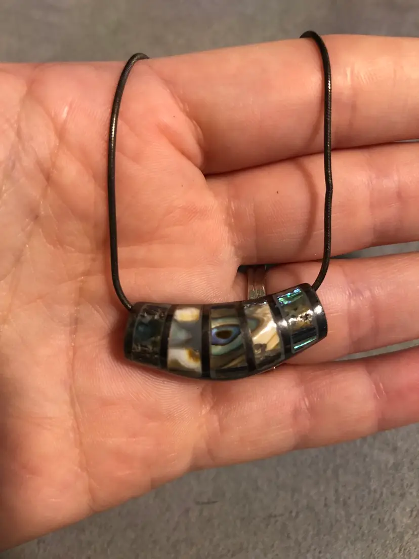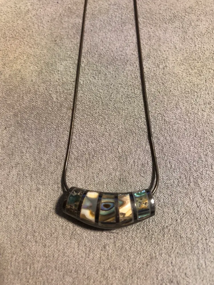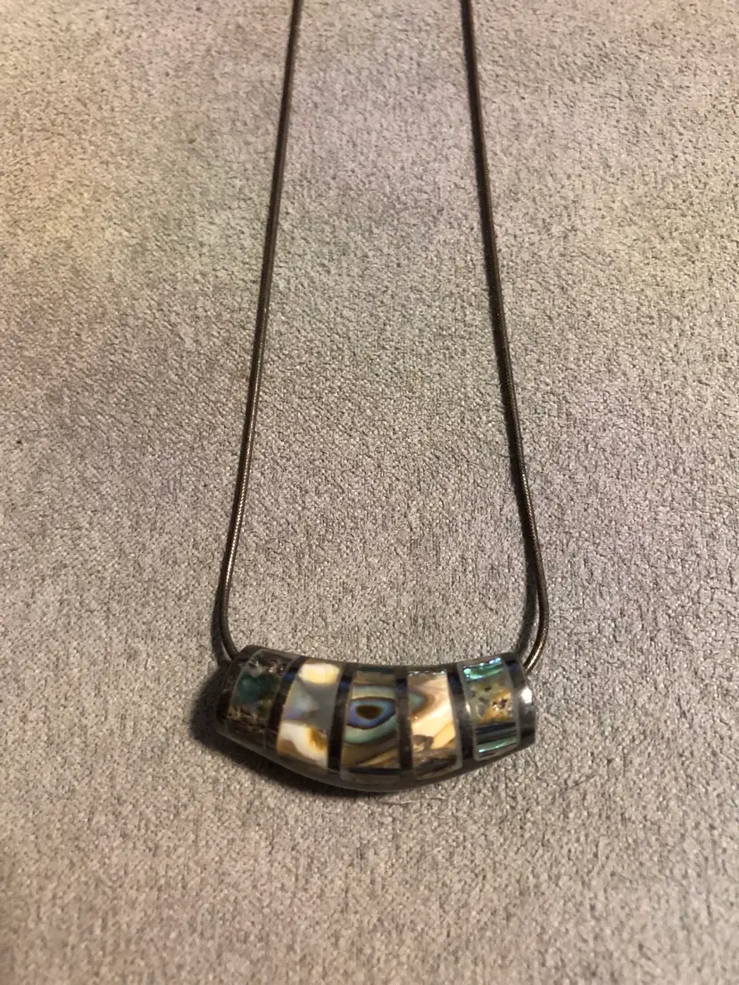 Both marked 925 The necklace is made in Italy and the pendant is marked CFJ Really beautiful Made with Abalone 18 inches in length when unclasped Does not come with the jewelry stands