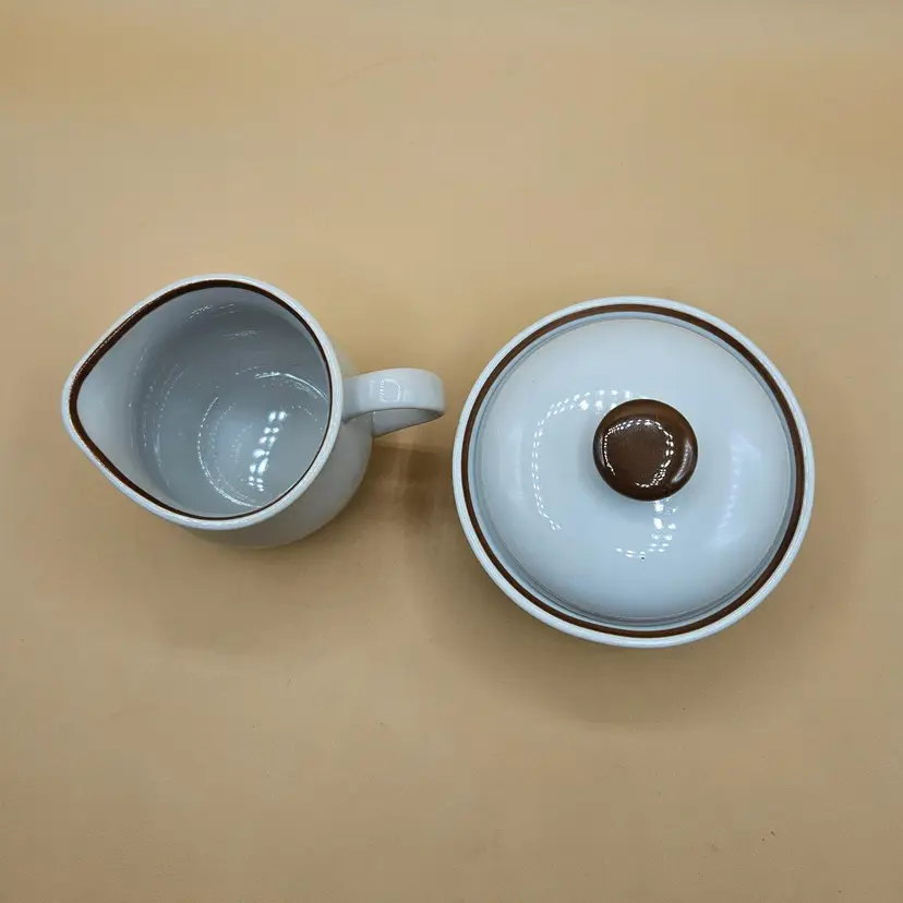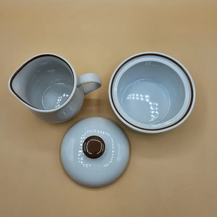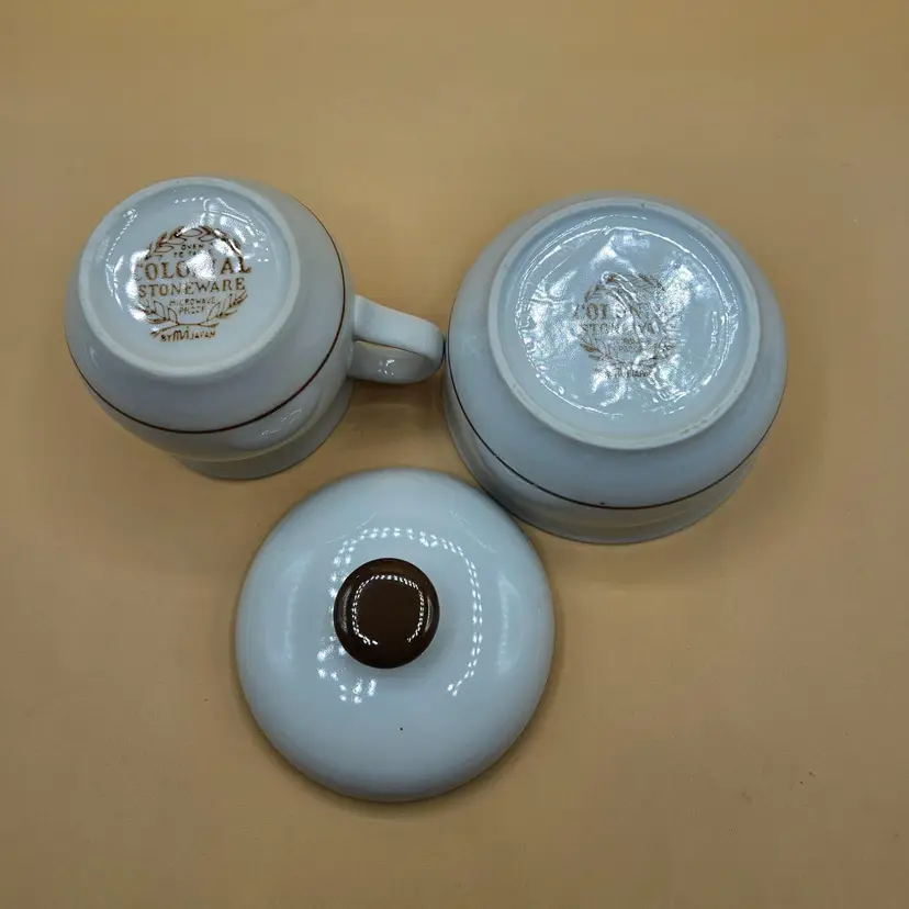 Creamer 3.5"H x 3" in diameter not including the handle. Sugar is 3.75"H x 4.5" in diameter. No chips, cracks or repairs. Some dots due to age, see pictures.