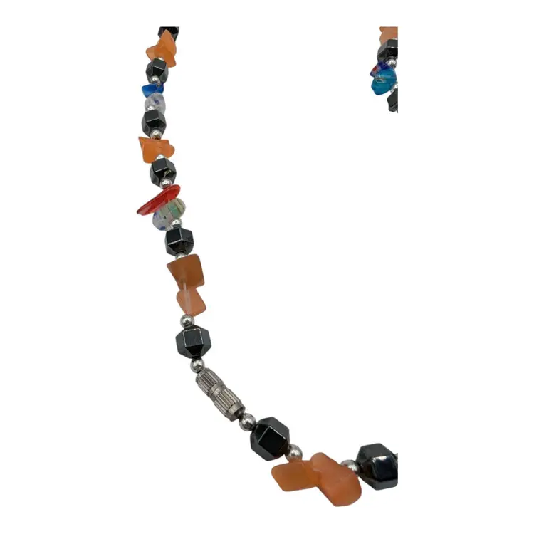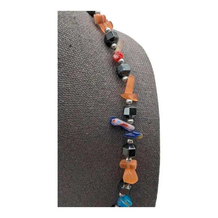 Beautiful beaded necklace featuring a mix of colorful gemstones. Perfect for adding a pop of color to any outfit. No visible damage. 18"