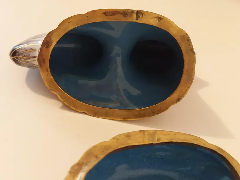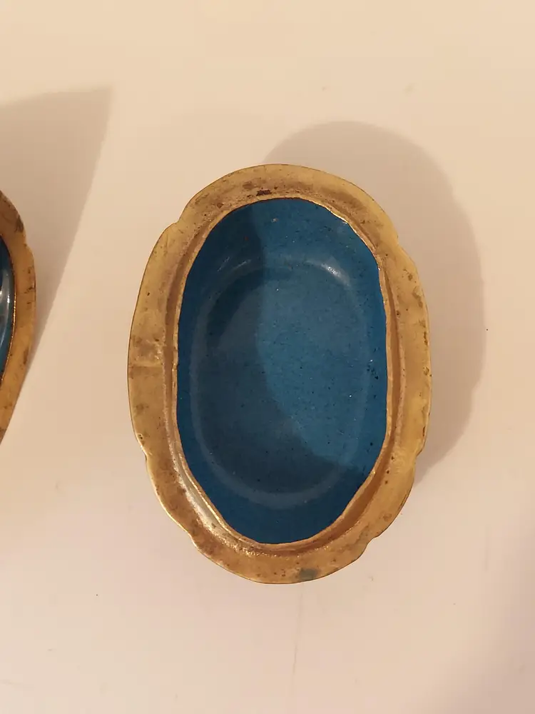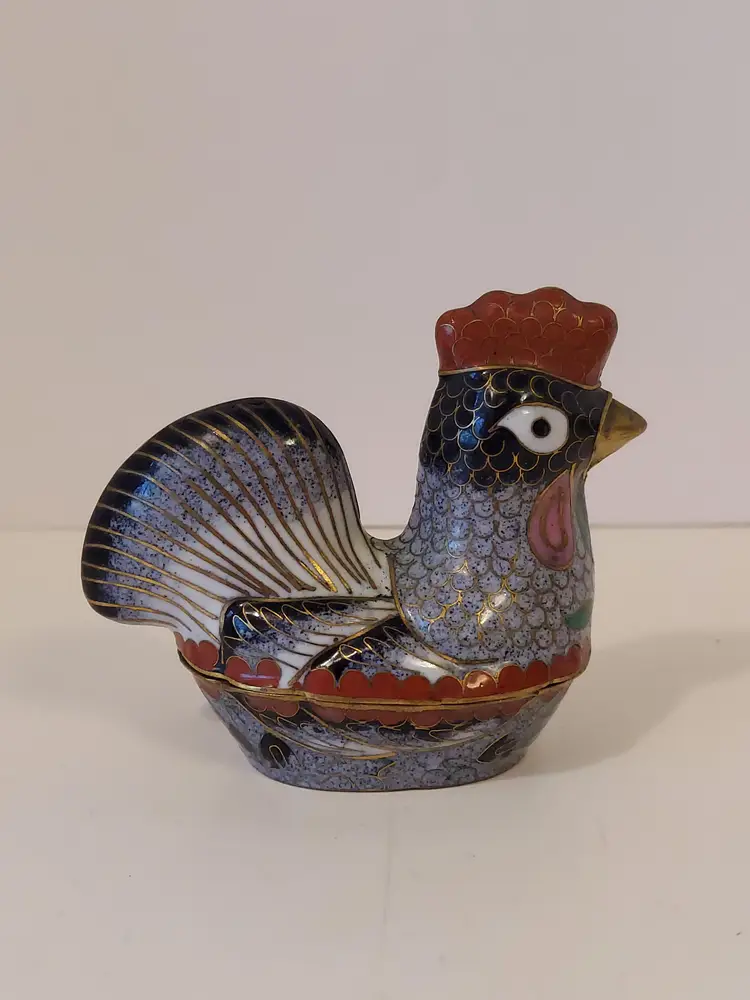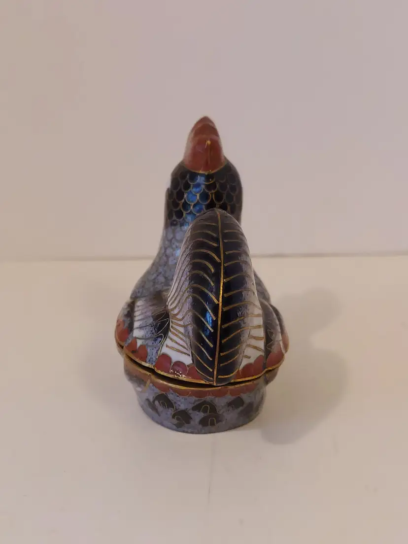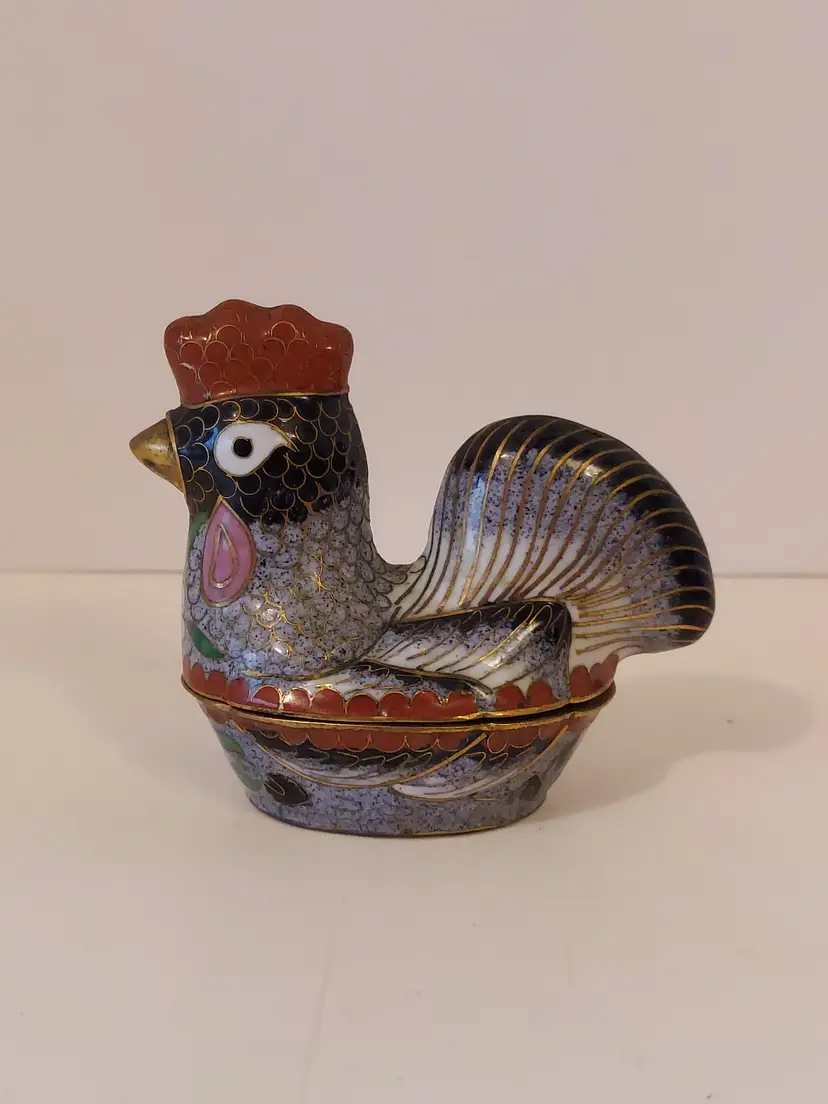 This pretty little trinket box measures approximately 3.5×3×2 inches and is in good condition.