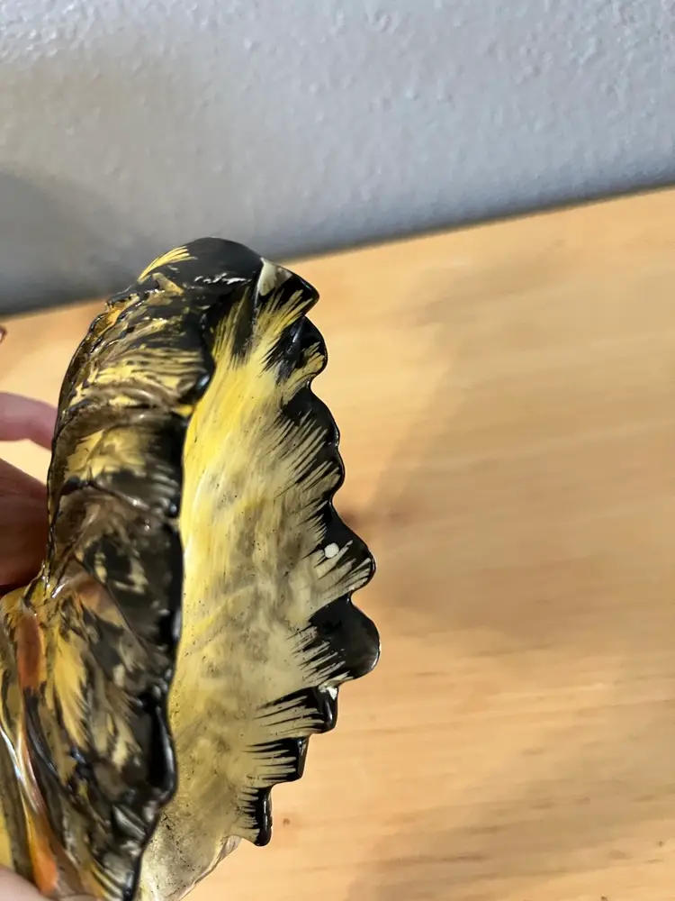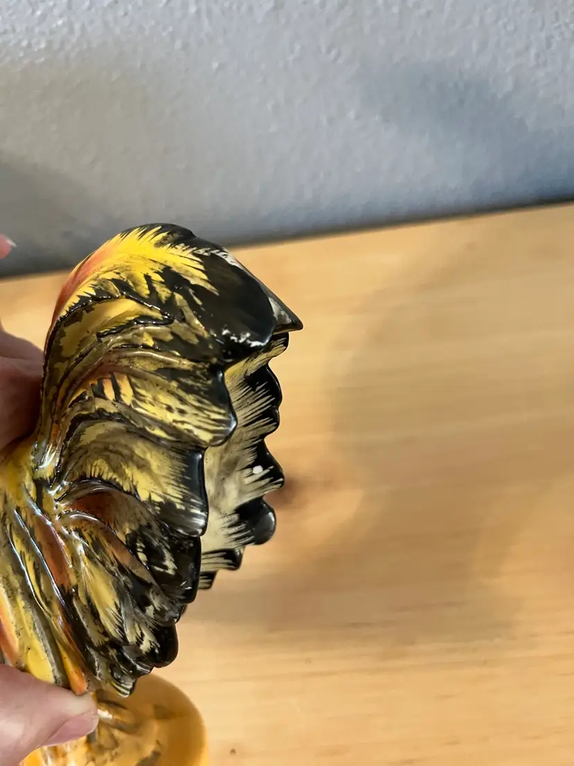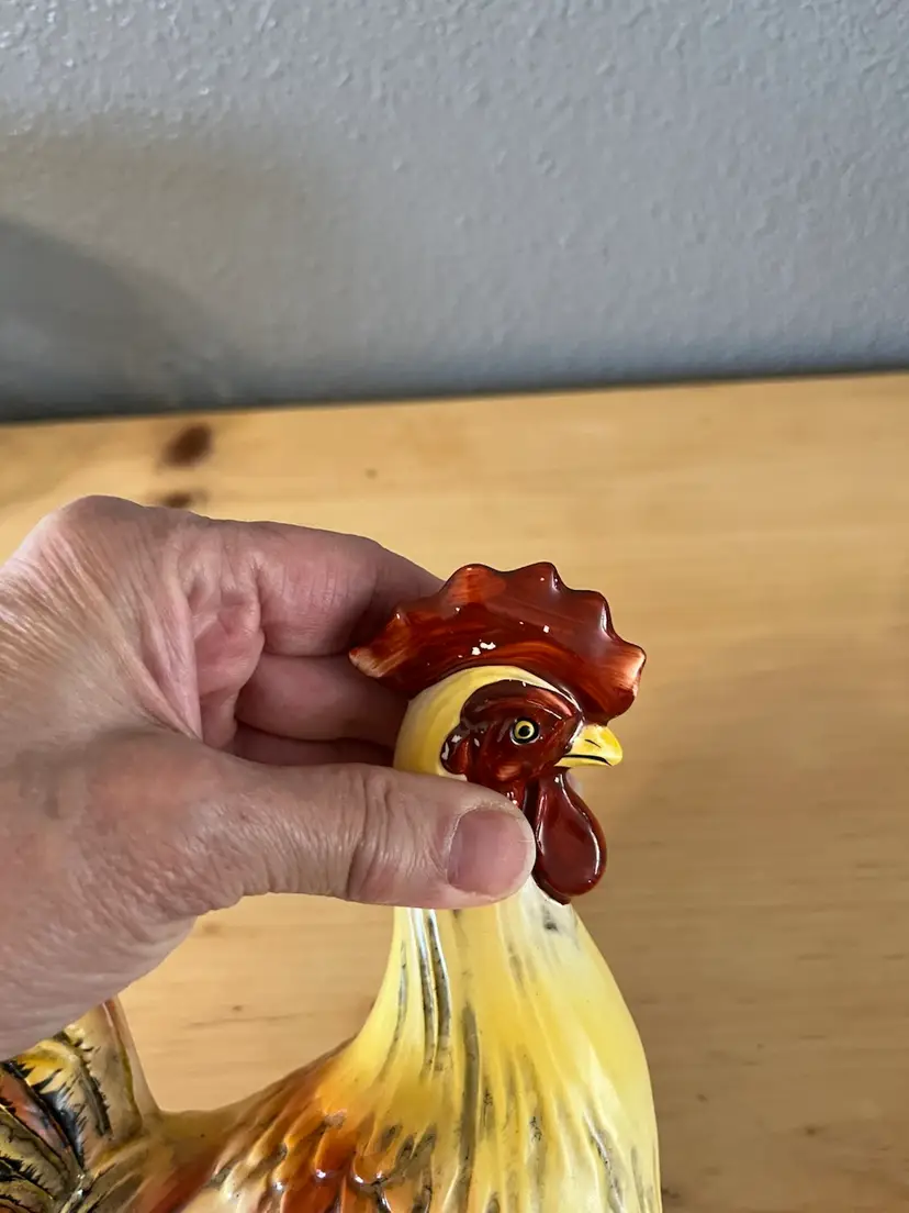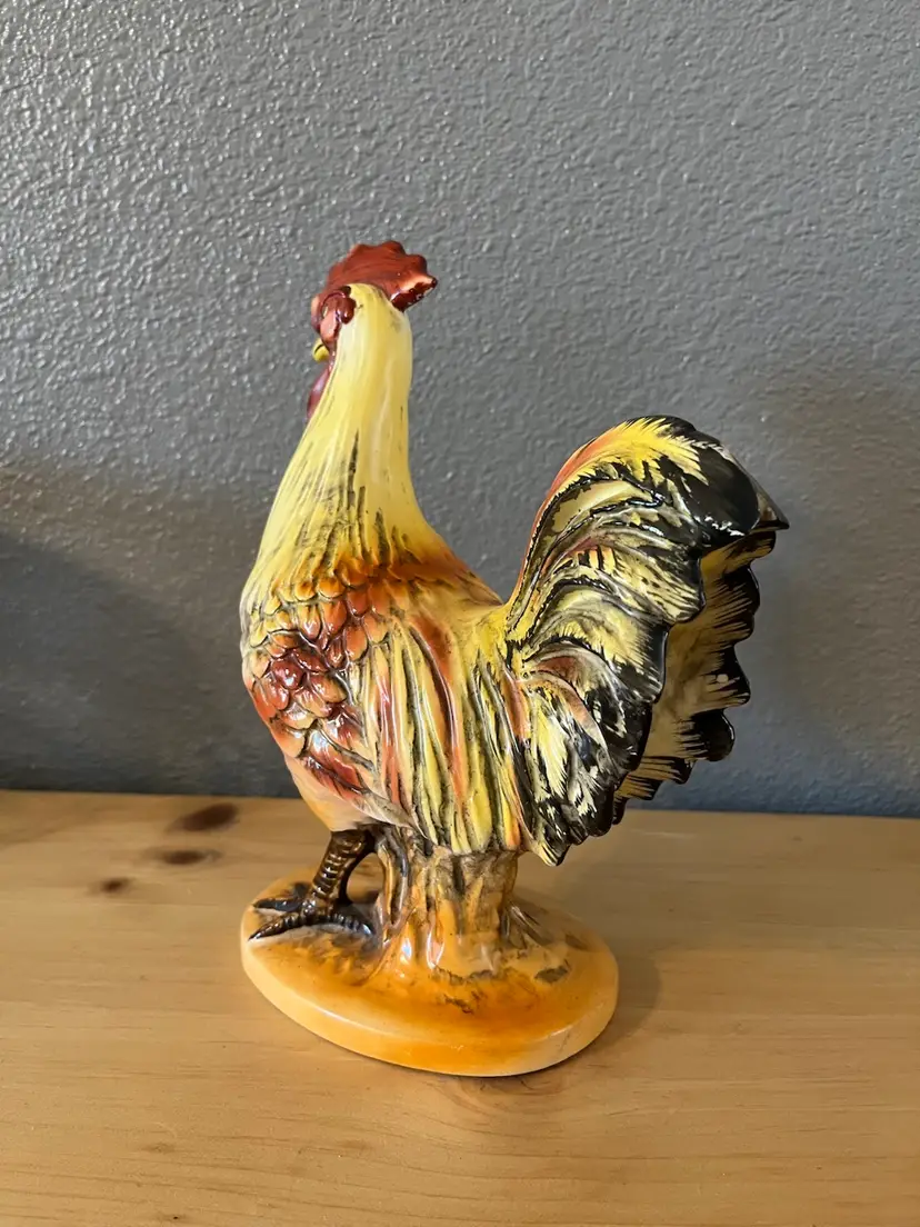 Absolutely gorgeous colors especially if you're into yellow and orange!! Slight paint wear on comb, and throughout body feathers. He is approx 8.5"H, 6.75" W, 13.1 Oz