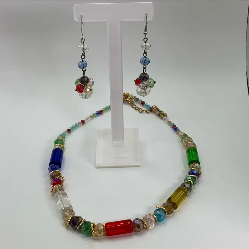 Colorful Necklace & Earrings 20” Earrings 2 1/2” Long