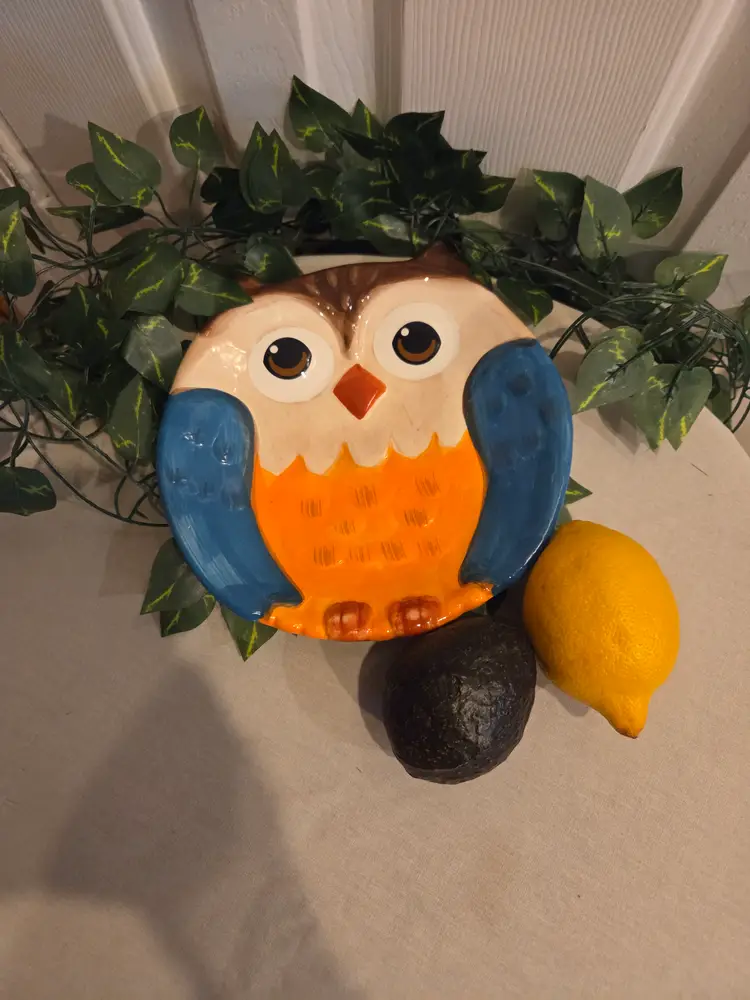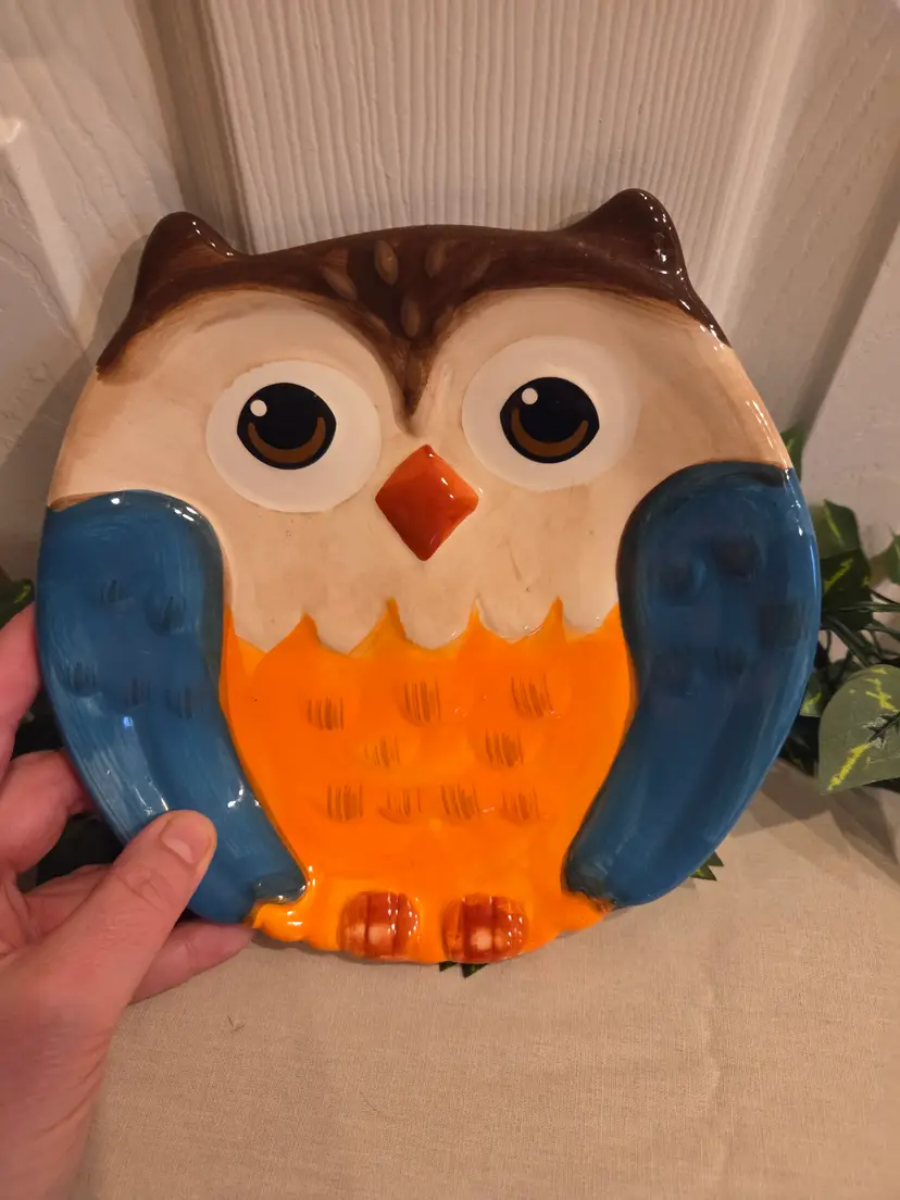 Brighten up your table with this charming owl ceramic plate. Its vibrant colors and whimsical design make it a delightful addition to any kitchen or dining room.