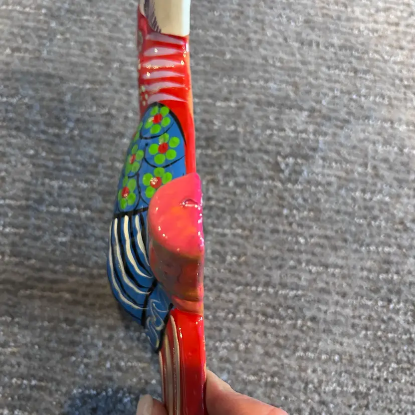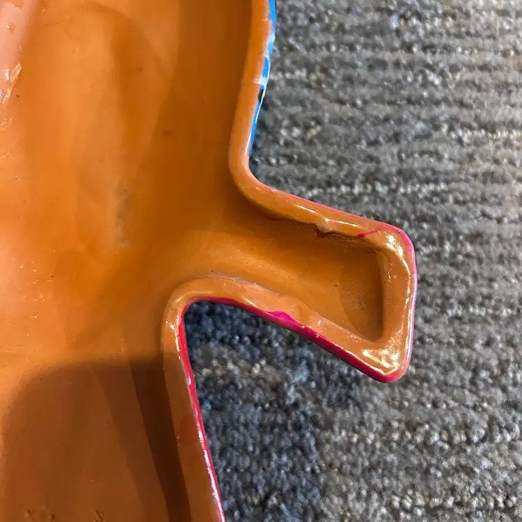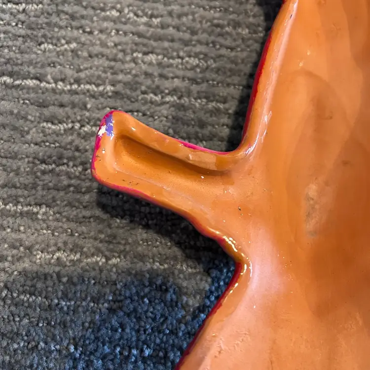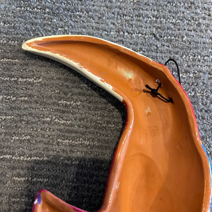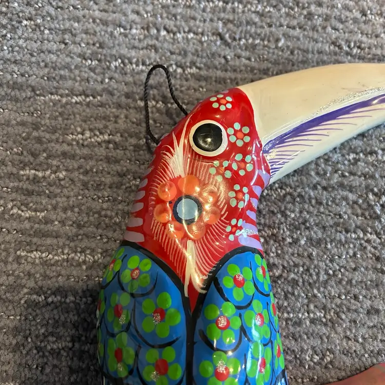 Beautiful and colorful Redware toucan bird wall hanging. Ten inches long x seven inches wide. Good condition for a Redware piece. See photos.