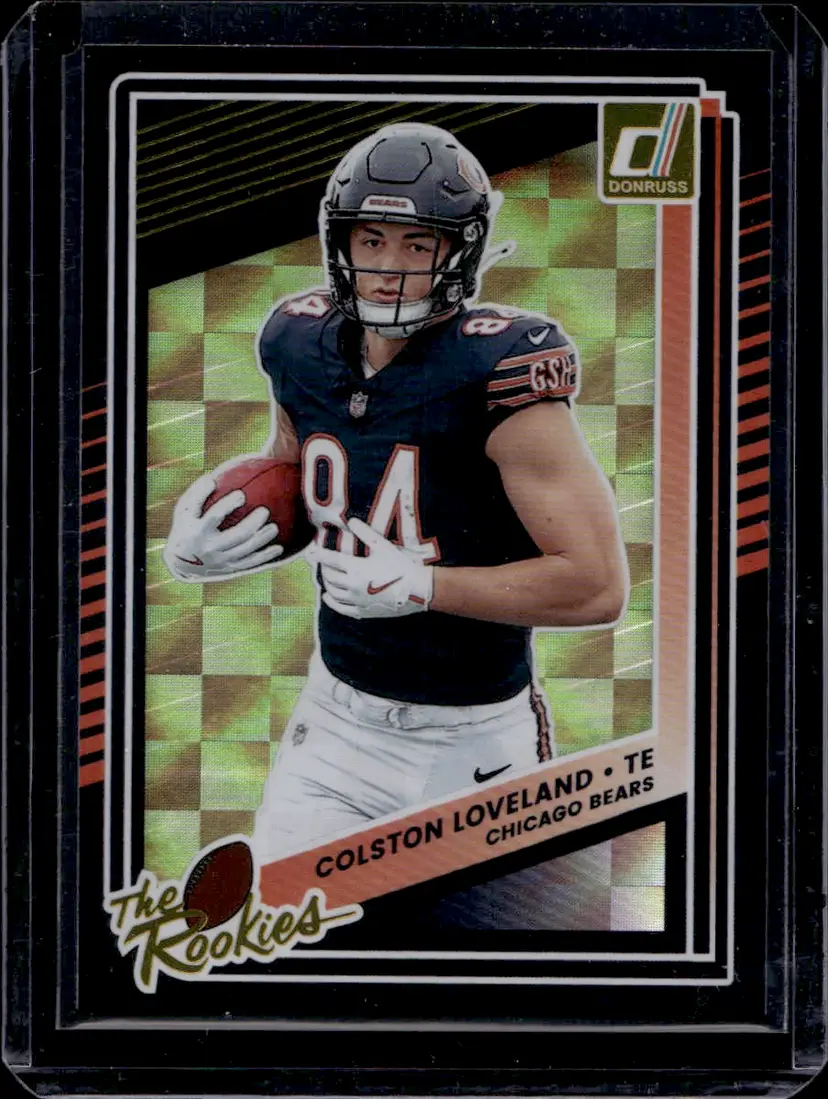 Add this Colston Loveland rookie card from the Donruss series to your collection. A great find for Chicago Bears fans and card enthusiasts.