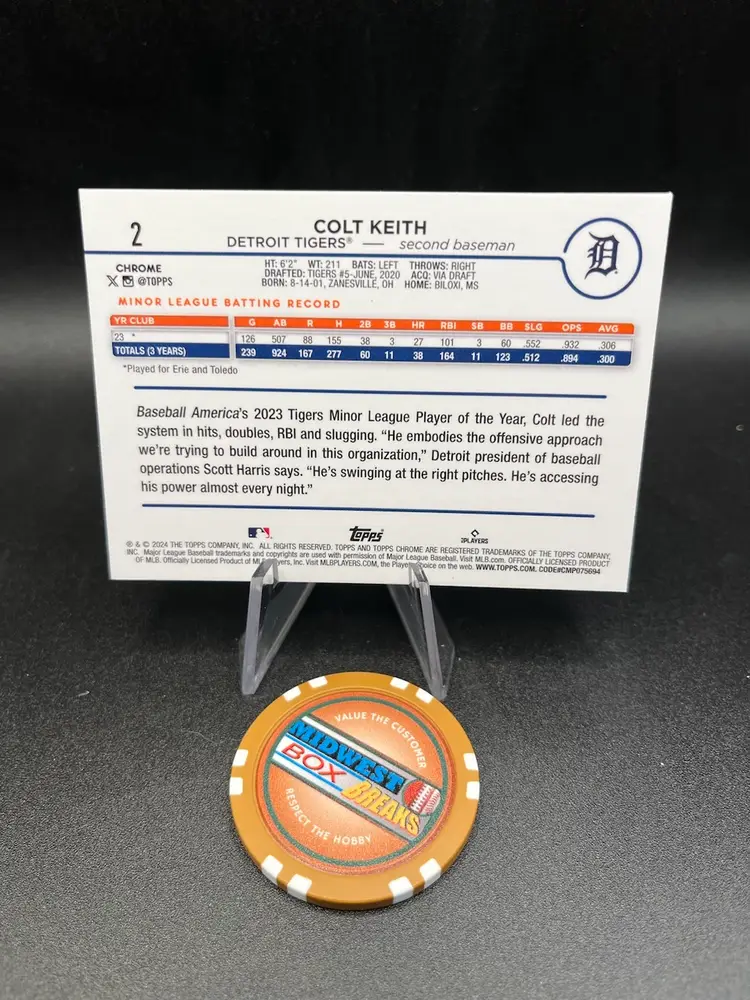 2024 Topps Chrome Colt Keith RC raywave parallel. Detroit Tigers.