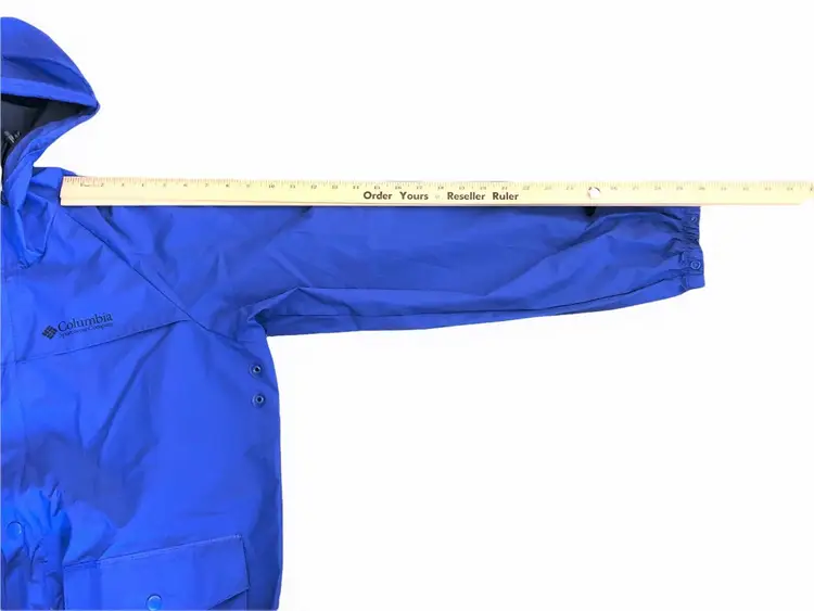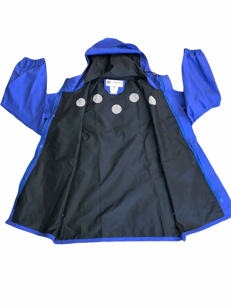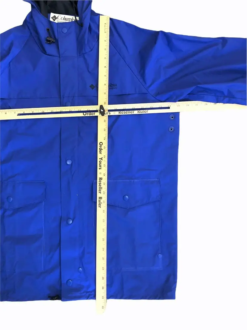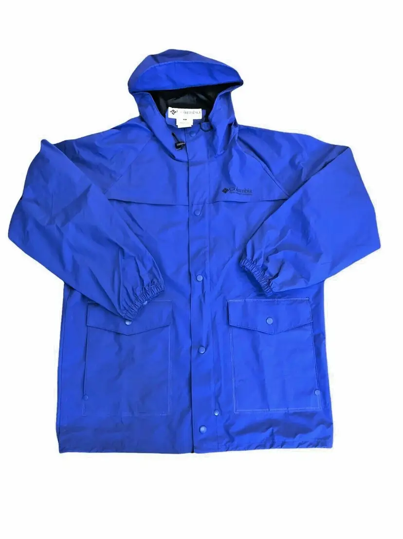 Outer Shell Material: PVC Pattern: Solid Insulation: Synthetic Closure: Zipper, Snap Occasion: Casual, Travel Size: M Color: Cobalt Blue Material: Nylon Accents: Logo Vintage: No Brand: Columbia Insulation Material: Nylon Size Type: Regular Department: Men Type: Jacket Model: Columbia RN69724 Warmth: Midweight Style: Windbreaker Features: Drawstring, Hood, Hooded