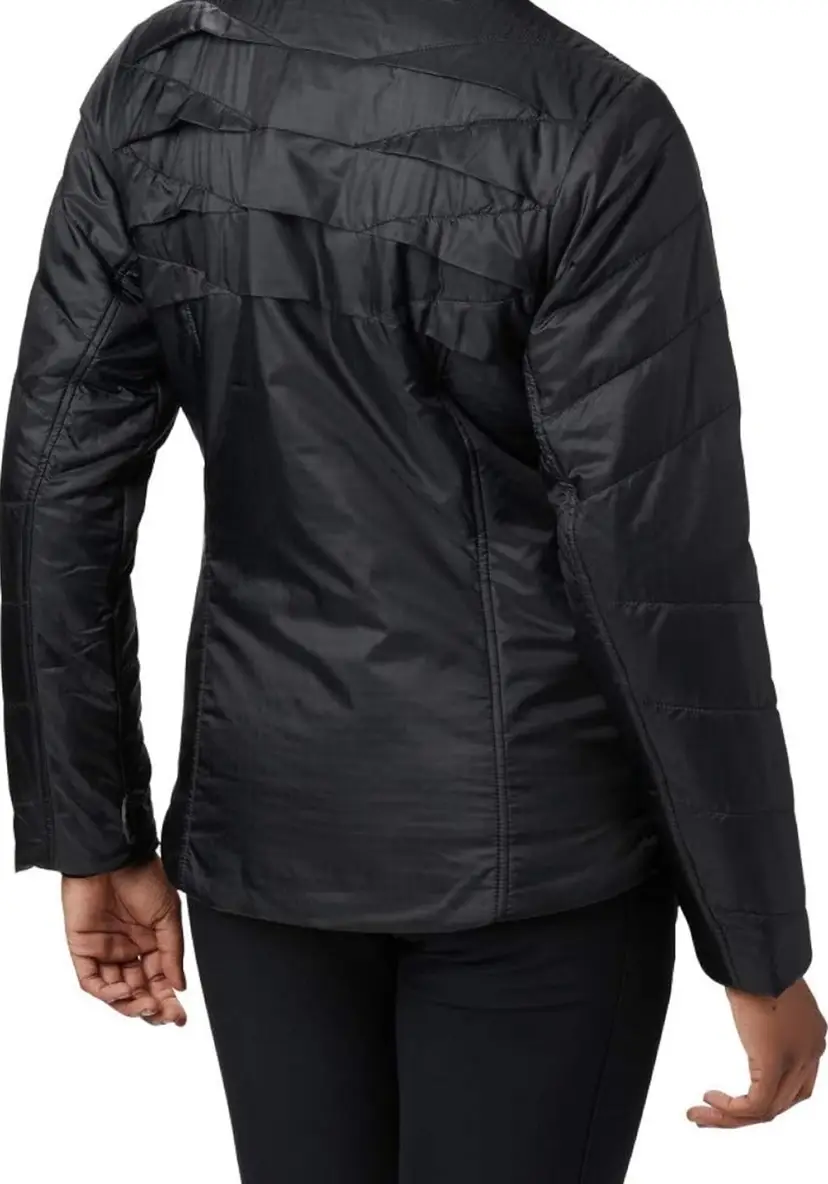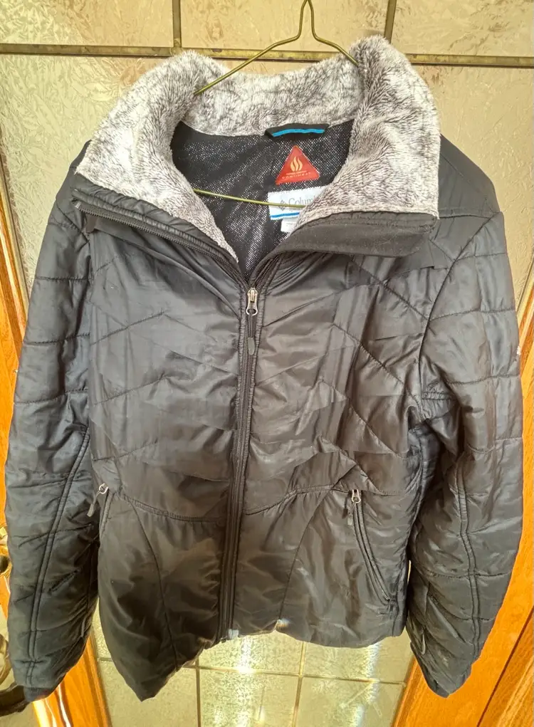 This cozy jacket utilizes Omni-Heat thermal reflective and insulation to provide superior warmth - its beautiful baffling makes it as perfect for everyday as it is for staying warm during cold-weather adventures in the outdoors. OMNI-HEAT: Our patented Heat Reflective garments are the ultimate body heat management system for outdoor performance. The interior lining consists of our metallic dot pattern designed to retain heat, while the breathable fabric dissipates moisture. Versatile Design: This Women's Kaleidaslope II Jacket can be worn by itself or zipped into a separately sold Columbia Interchange compatible shell. WATERPROOF OUTER COAT: Made with advanced fabrics and materials, this versatile jacket will keep you incredibly comfortable and dry across a wide range of climates. THERMAL LINER: Designed to zip in to the outer shell for an added layer of warmth and comfort, this inner jacket features our thermal-reflective technology to keep you warm. HANDY FEATURES: This jacket features an adjustable storm hood with built-in chin guard, a zippered chest pocket for valuables, hand pockets with snap closures, adjustable cuffs, a drawcord adjustable hem, and drop tail to keep the warmth in and cold out. Retails for $175 CDN. 20.5” pit to pit.