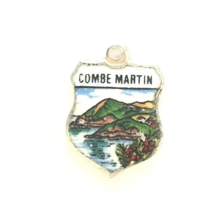 Combe Martin English - Vintage Enamel Souvenir Travel Shield Bracelet Charm - 925 Sterling Silver