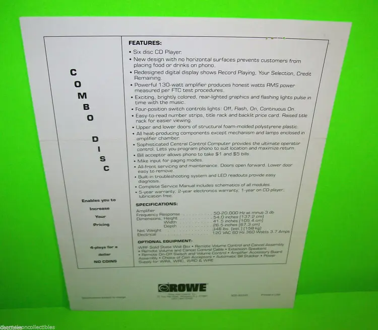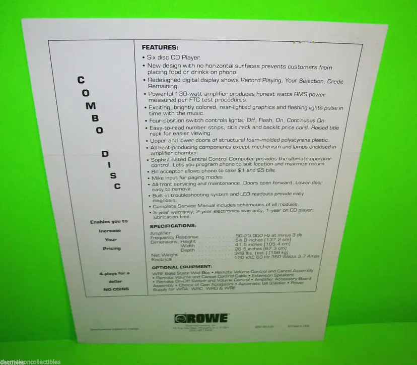 Country/Region of Manufacture: United States Original/Reproduction: Original Brand: Rowe Modified Item: No Jukebox: Flyer