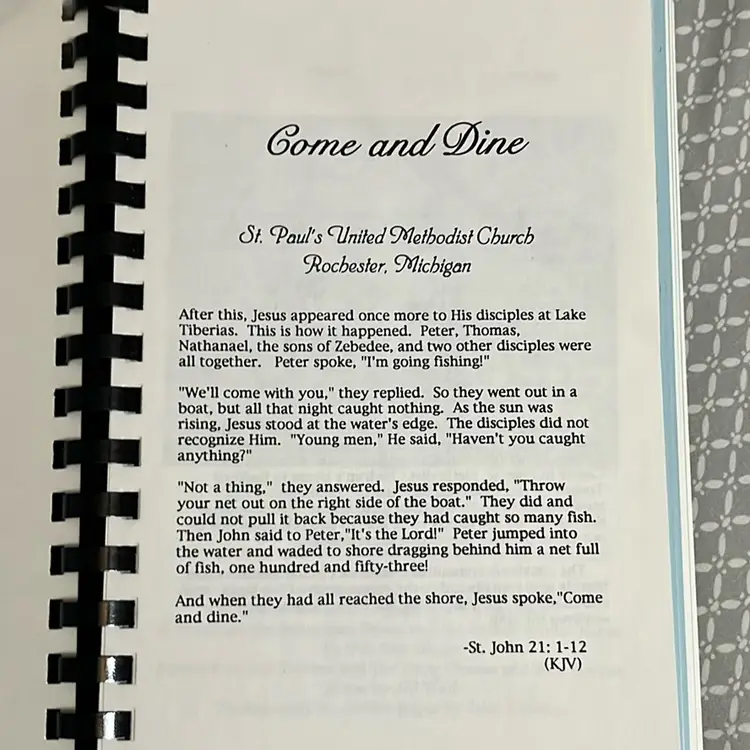 St Paul’s united Methodist church in Rochester, MI produced this cookbook. Cover is creased.