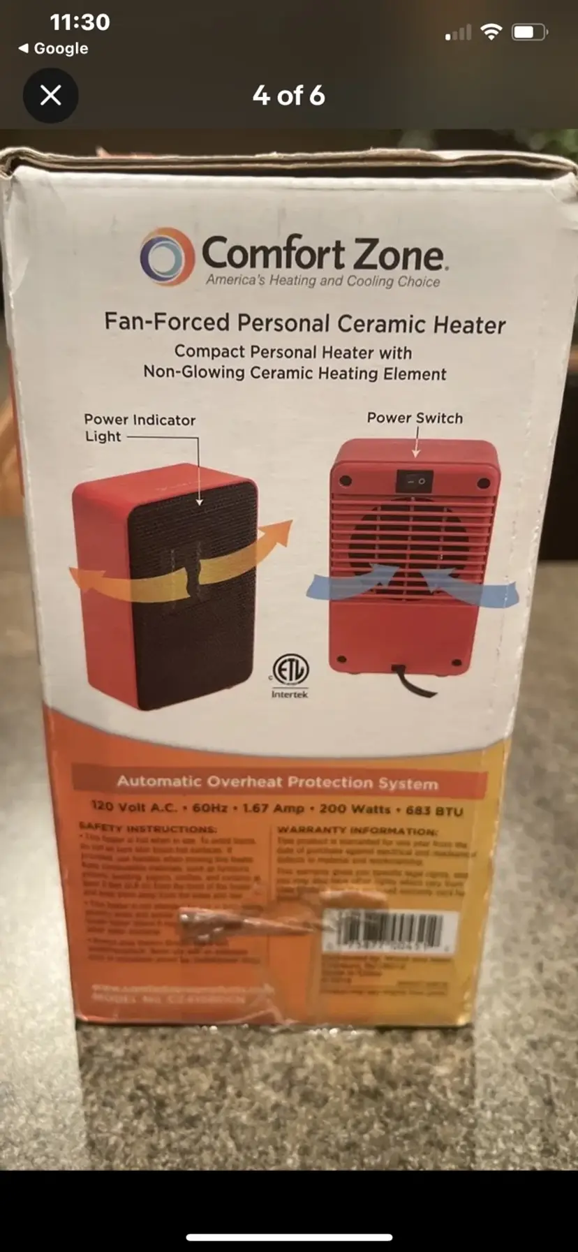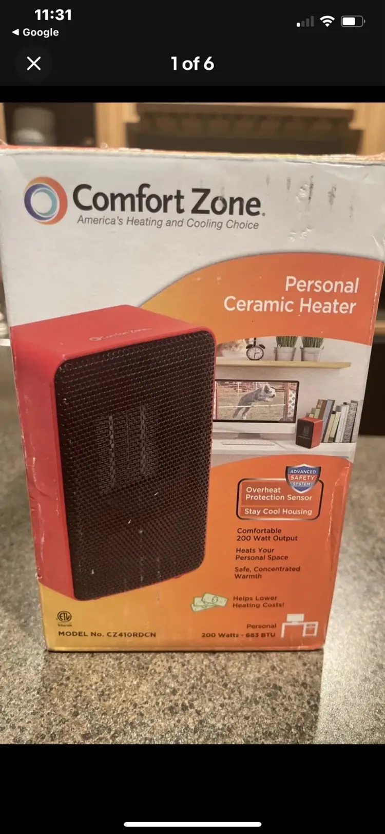 Comfort zone ceramic heater model CZ410RD rating 120 V AC 60 HC 200 W 8/22. made in China. tested appears to be new without box. 2 heaters available.
