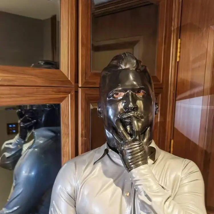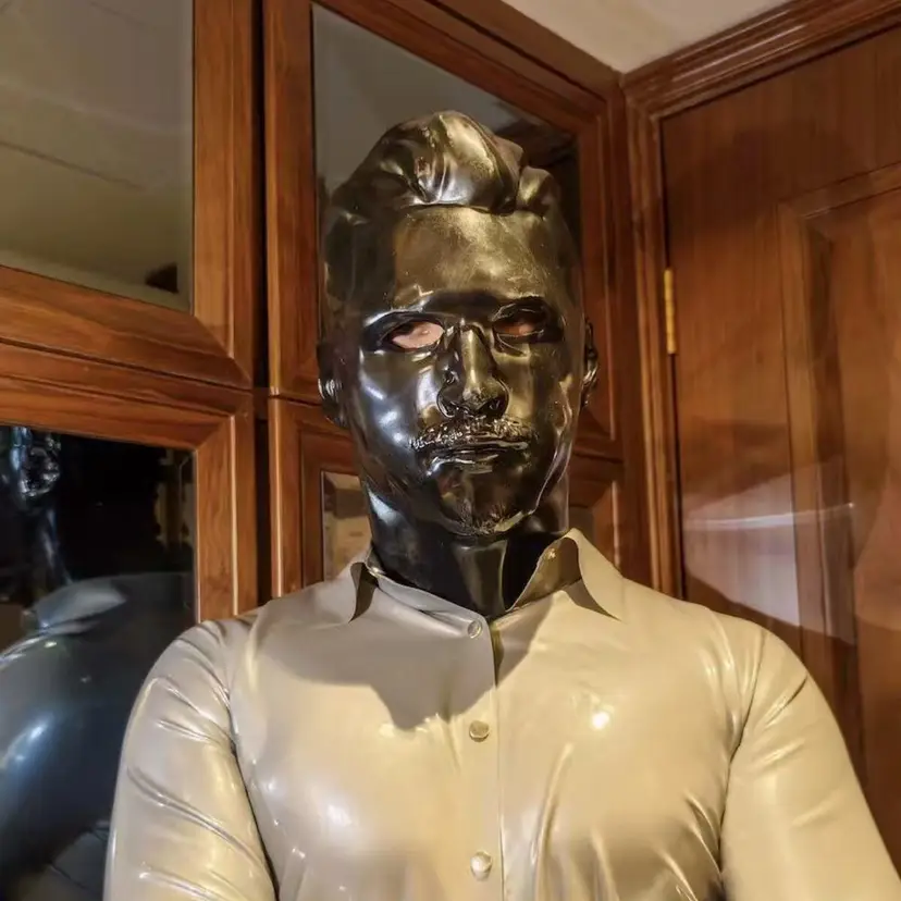 This latex "Commander" mask is designed in the image of a commanding figure and crafted from premium latex material.