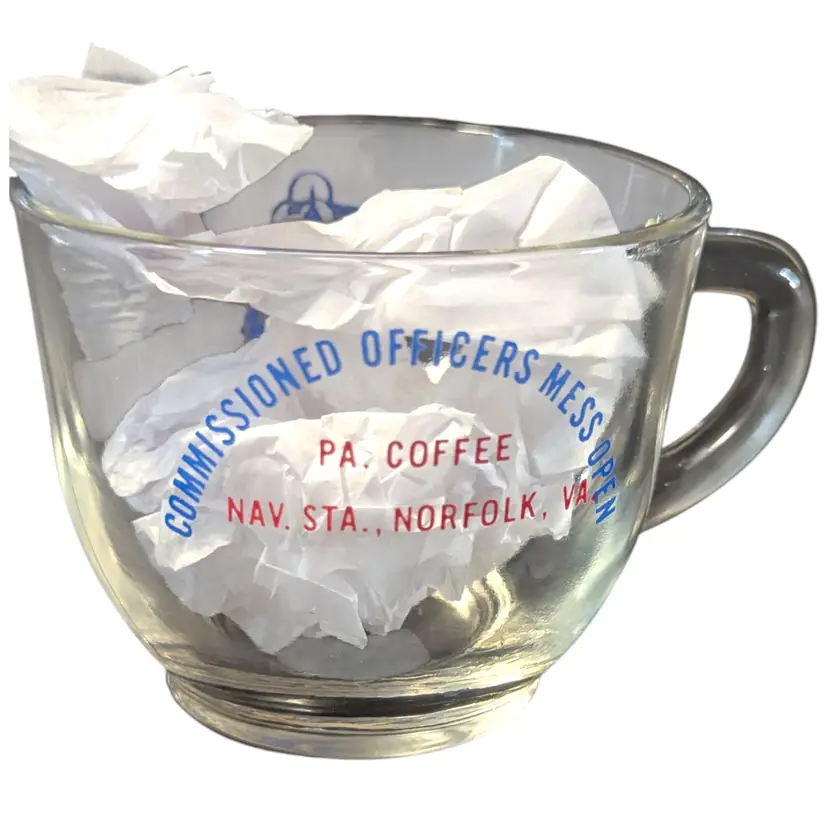 Commissioned Officer's Mess Naval Station Norfolk VA Glass PA Coffee Cup. Pre-owned in good condition.
