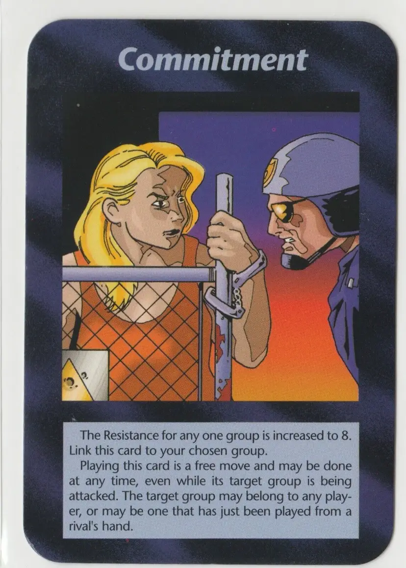 Card Size: Standard Autographed: No Set: Unlimited Store ID: American Pop Cult Material: Card Stock Vintage: Yes Rarity: Uncommon Game: Illuminati: New World Order Relevant Keywords: Commitment Language: English Card Name: Commitment Manufacturer: Steve Jackson Games Country/Region of Manufacture: United States Finish: Regular SKU: A.0397.0499