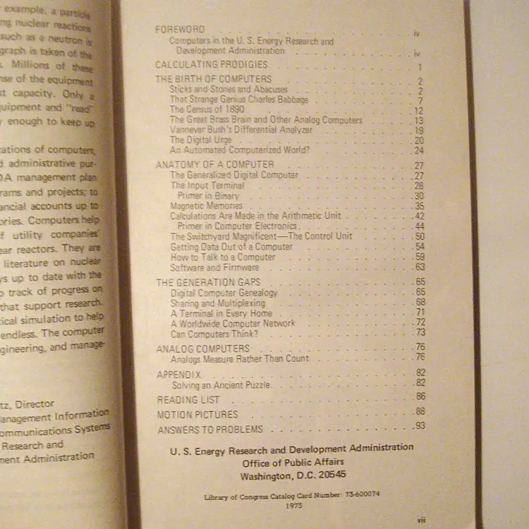 Title: COMPUTERS Author: William R. Corliss Published: 1973 United States Energy Research and Development Administration Office of Public Affairs 81 pages + Appendix Black & white paperback Condition: clean, unmarked, some smudging on cover.