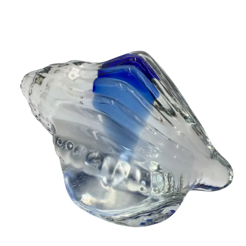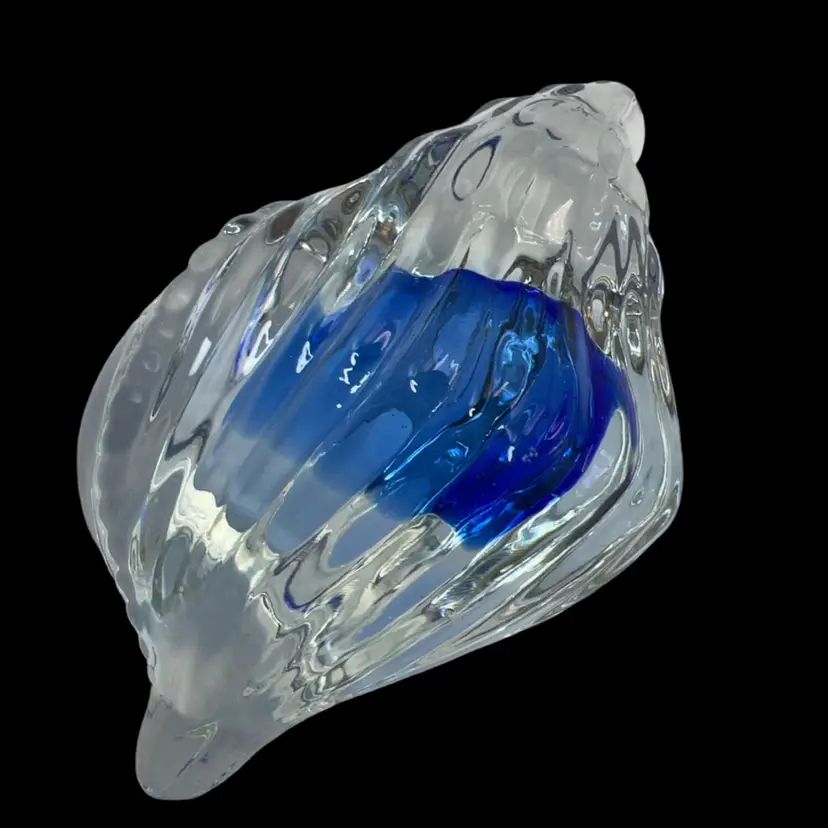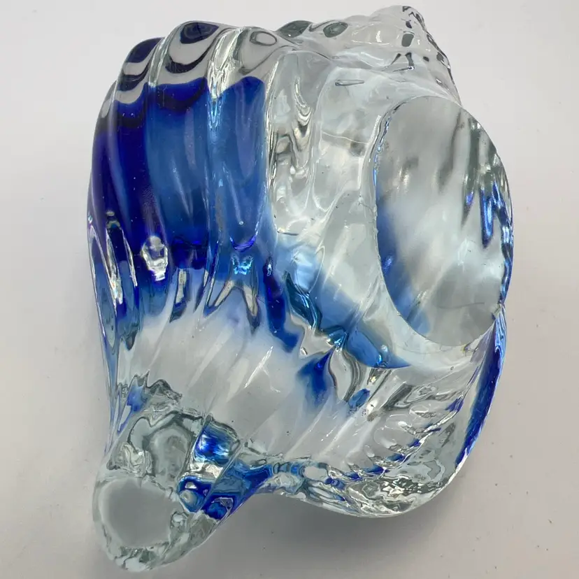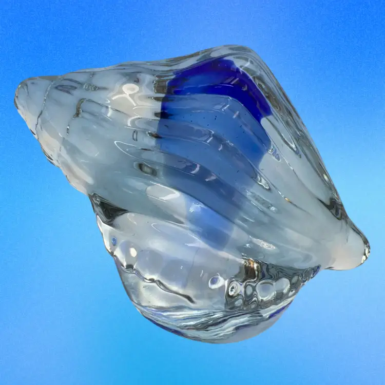 Everything seashell! That’s what I’m feeling in April 🐚. This is a pretty glass with a swoosh of cobalt blue inside. Clear bottom.