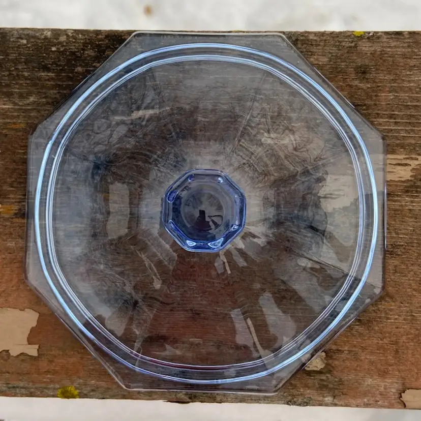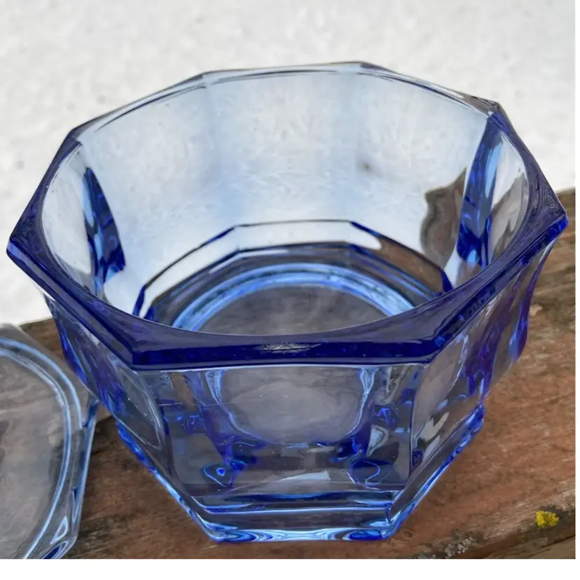 Approx: 5.75”h (including lid) x 5 3/8”w, opening 4 7/8”w). Preowned condition. No chips or cracks. One manufacturer’s flaw on rim of lid (smooth), last image. See images as part of description.