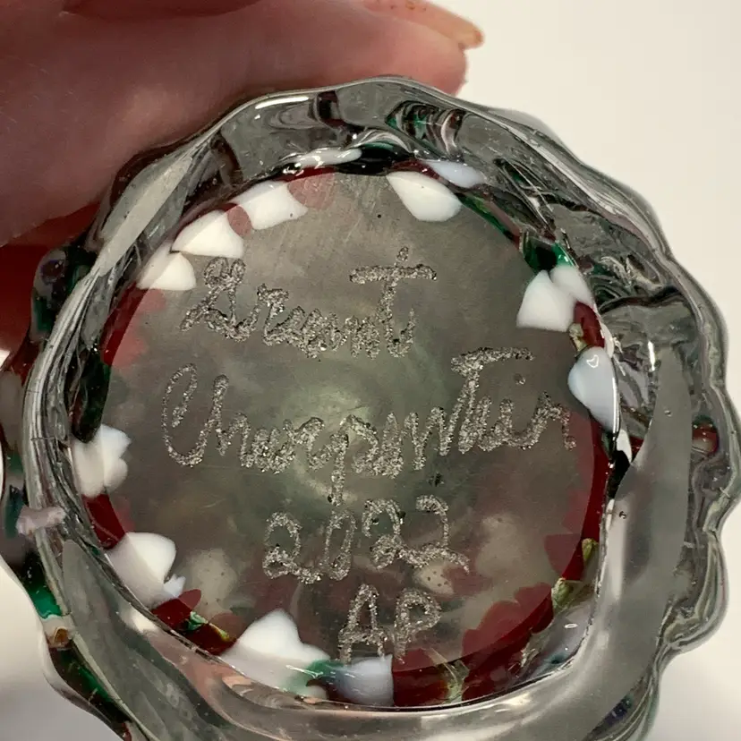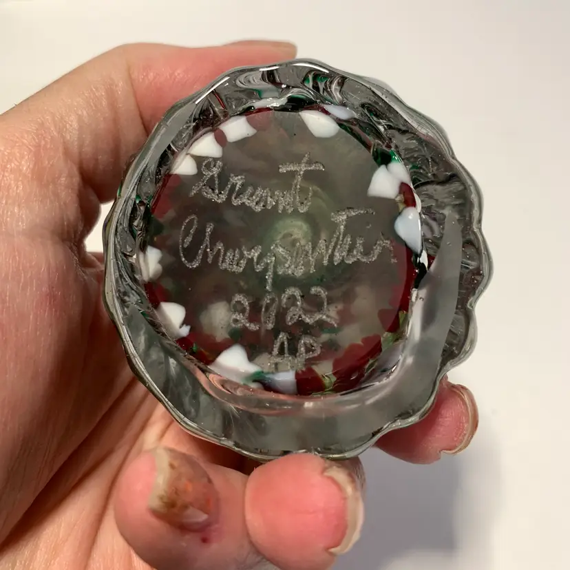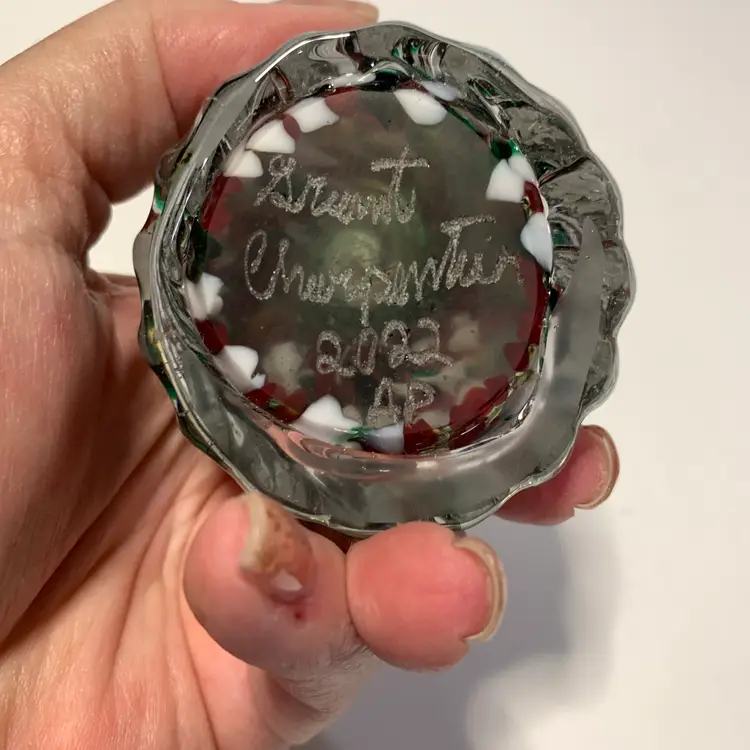 This is just beautiful. This is in great condition. No chips or cracks. Measures 2 1/4 inches wide and 4 inches tall. Weighs 13 ounces. If the actual postage ends up being less than what you paid, you will be refunded for anything over one dollar.