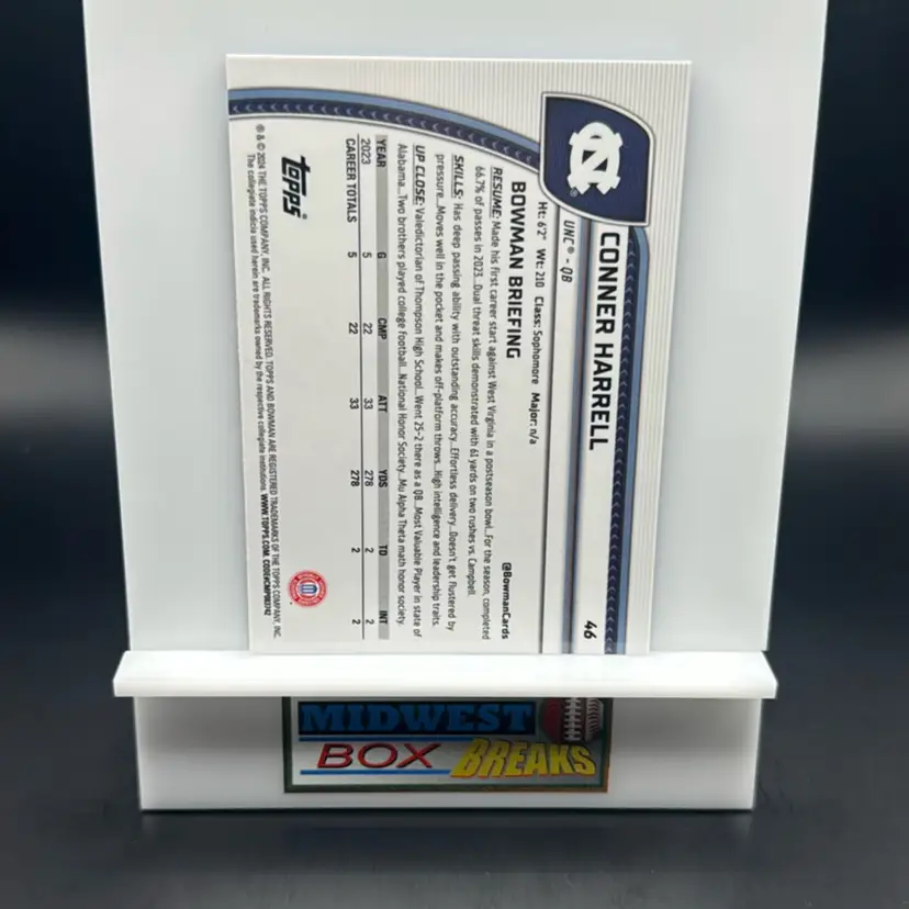 Conner Harrell 1st 2024 Bowman University Chrome Sapphire North Carolina MBBCRD